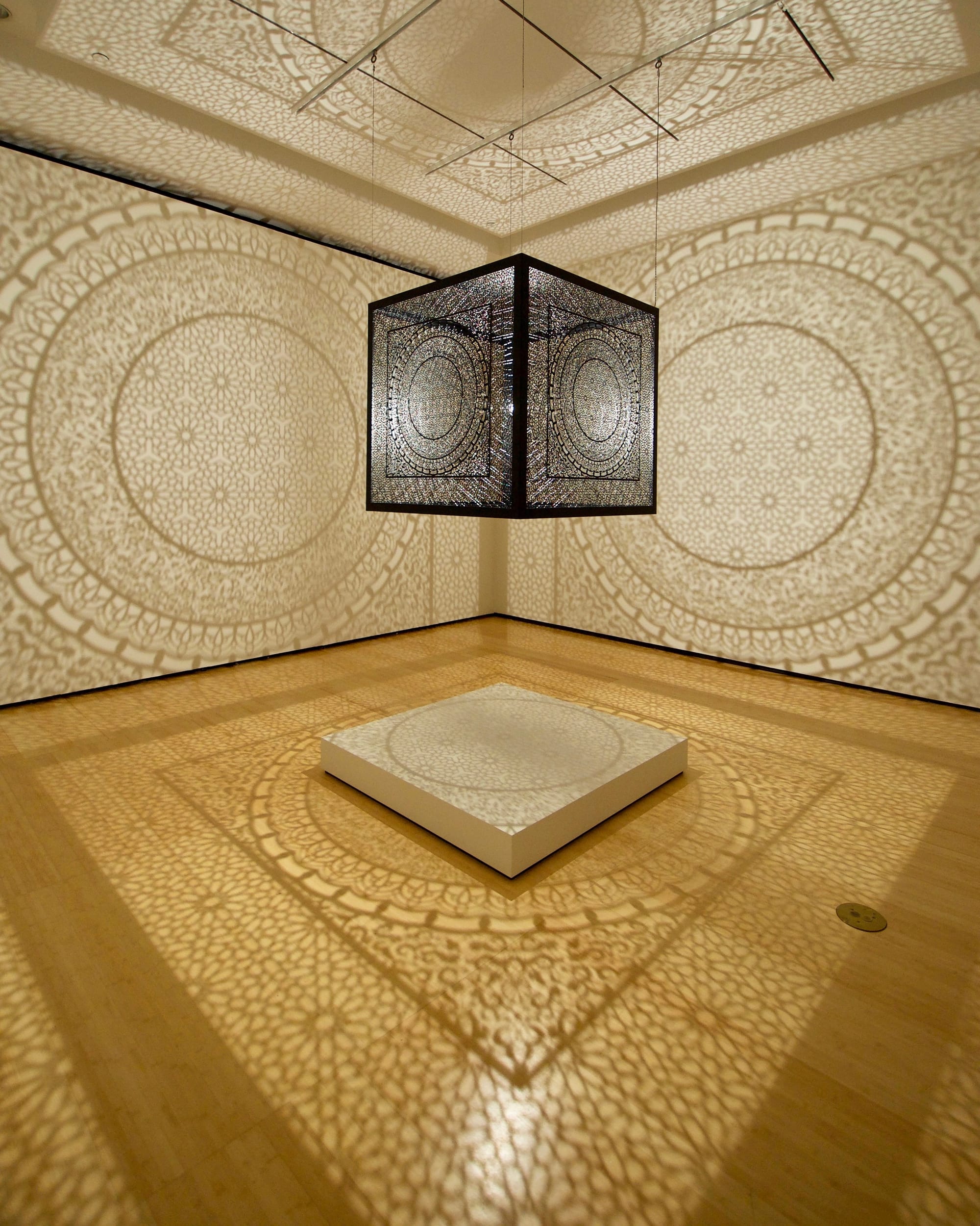 One of the only works to be allotted its own space in the exhibition is an installation by Anila Quayyum Agha, who is represented by her well-known Intersections series that was the first artwork to capture both the public and juried prizes at ArtPrize back in 2014. The series, as represented by “Crossing Boundaries” (2015), addresses the boundaries and limitations of gender in her native Pakistan, where religious conservatism had a profound impact on her early life. The form, which hangs in the center of the room like a beacon of light, is partly derived from her memories of the screens that separated men from women in mosques. My only criticism of the installation is that the artist’s work can easily envelope a much larger gallery and, like the rest of the exhibition, the artwork feels reigned in to accommodate the space.