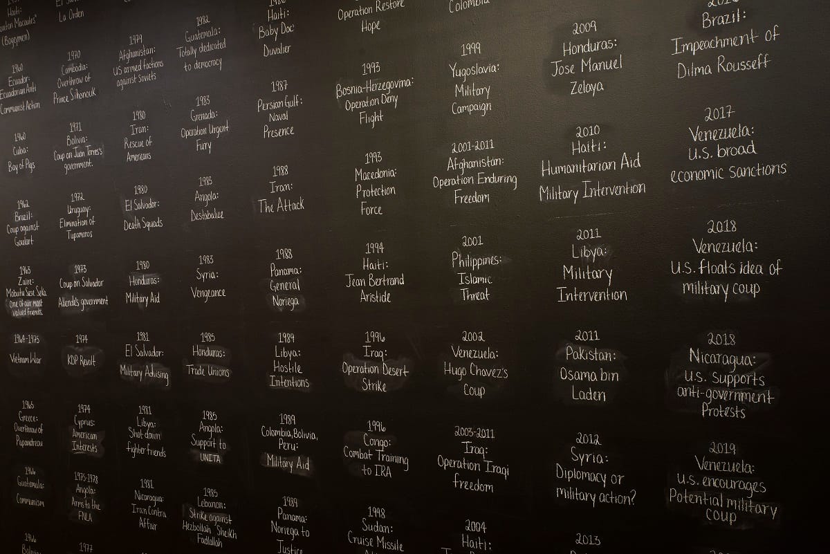 For centuries, outside economic interests have supported plutocratic and fascist governments in Central America. Nicaragua, El Salvador, Guatemala, and Honduras suffered insurmountable and often deadly oppression when the Soviet-obsessed Reagan Administration spent tens of millions of dollars supporting right-wing Contras that committed myriad human rights atrocities against civilians from 1979 to 1990. This series of events catalyzed the formative 1980s activist campaign Artists Call Against US Intervention in Central America.