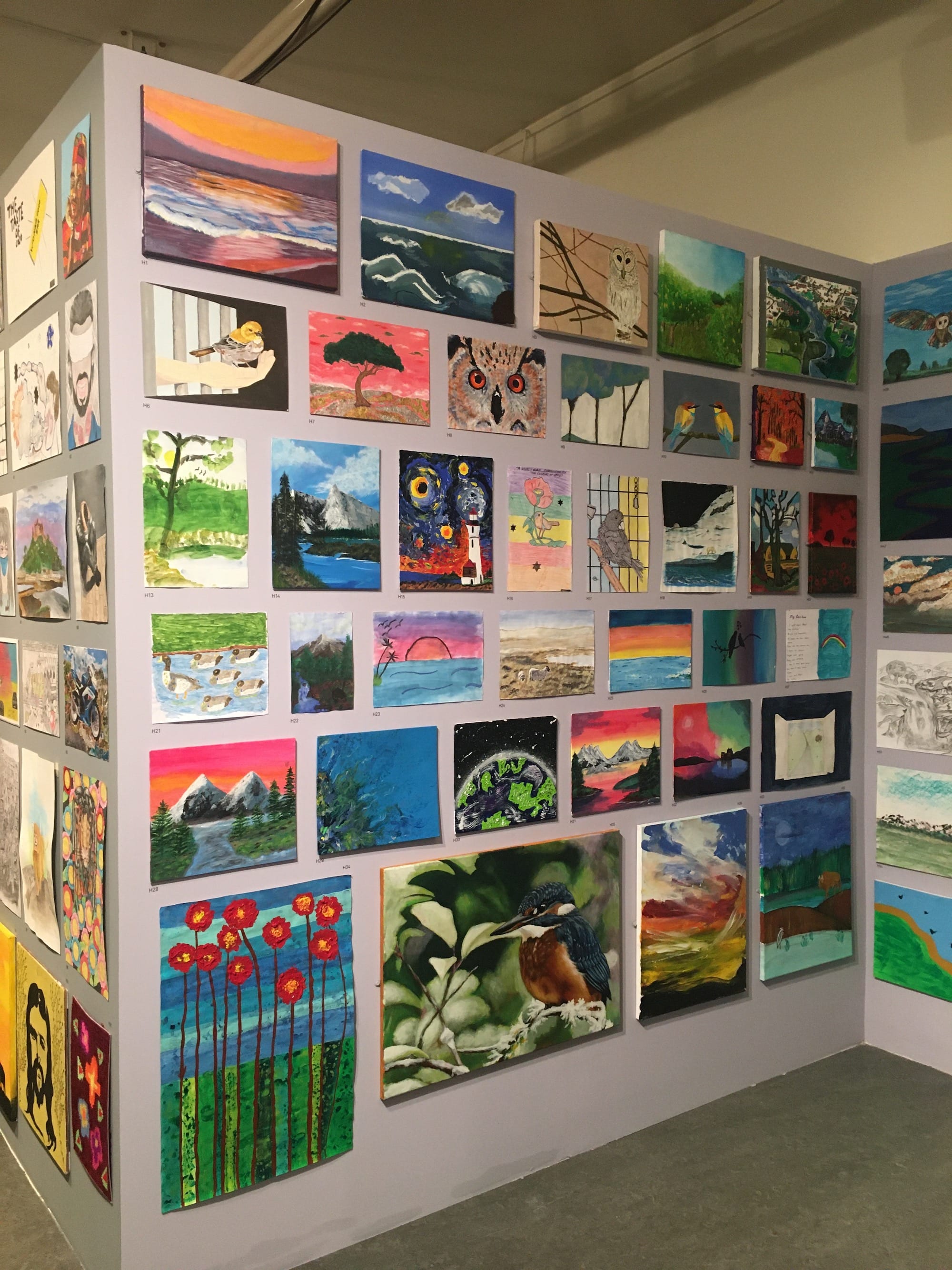 The identities of the artists are anonymous — only their prisons are listed in the exhibition guide. This is intended to protect them from being identified as offenders to relatives, employers, or the press, and to avoid sensitivities relating to victims of a crime — all of which makes sense. It’s hard to escape the feeling, though, that the artworks have been slightly flattened by this anonymization. This is mitigated, however, by the presence of a group of visitor assistants who are themselves formerly incarcerated and are able to share their personal insights about the artworks and the context in which they were created.