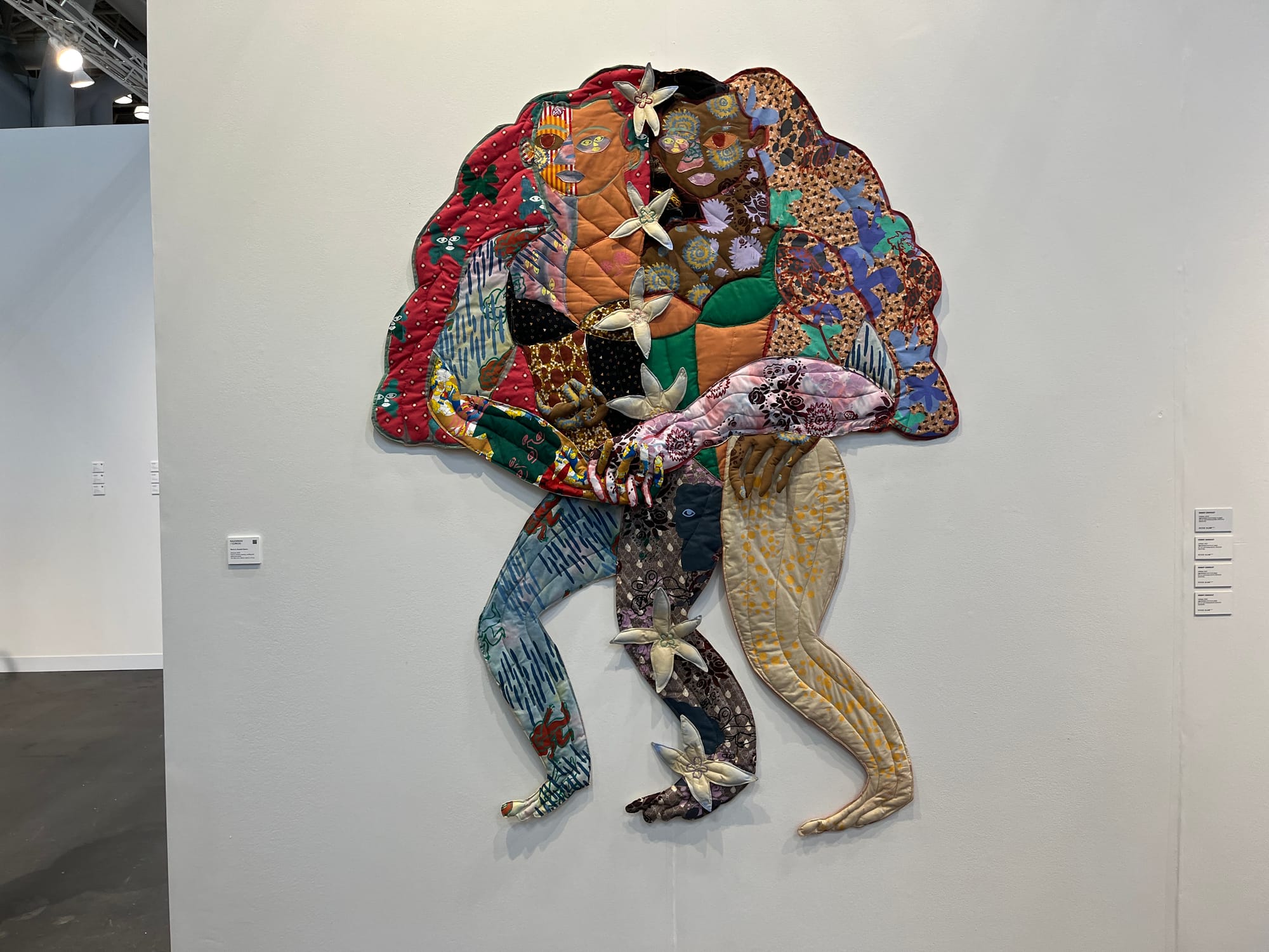 I'm standing in front of Sanford Biggers's “Mirror” (2024) from his Chimera series at the fair’s Platform section, curated by Eugene Tsai, former senior curator of contemporary art at the Brooklyn Museum. It’s a classical European marble statue of a woman whose head is replaced with an African mask. I couldn’t quite tell if it was a European woman wearing an African mask, or an African woman wearing a Greco-Roman garb.