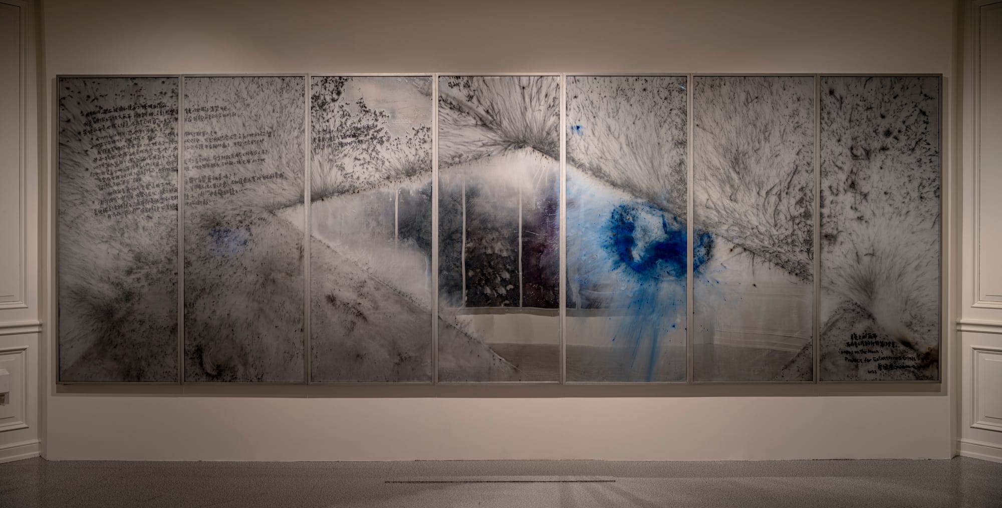 Cai Guo-Qiang: A Material Odyssey continues at USC Pacific Asia Museum (46 North Los Robles Avenue, Pasadena, California) through June 15, 2025. The exhibition was curated by Rachel Rivenc, head of Conservation and Preservation at the Getty Research Institute.