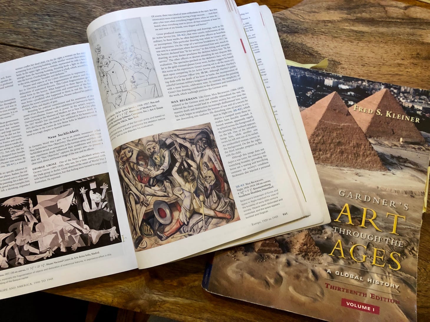The first time I encountered Gardner’s Art Through the Ages, one of the go-to textbooks used to teach very traditional art history, was in an AP class in high school. Now, as a master’s student in art history at Hunter College, we have to study for something called the “comprehensive exam,” lovingly known as “the comp”: an image identification test of 25 artworks chosen at random from nearly 500 works from antiquity to the present. As I stay home for the foreseeable future, I’ll be sprawled on the floor hand-writing flashcards and finally studying for the comp. —Valentina Di Liscia