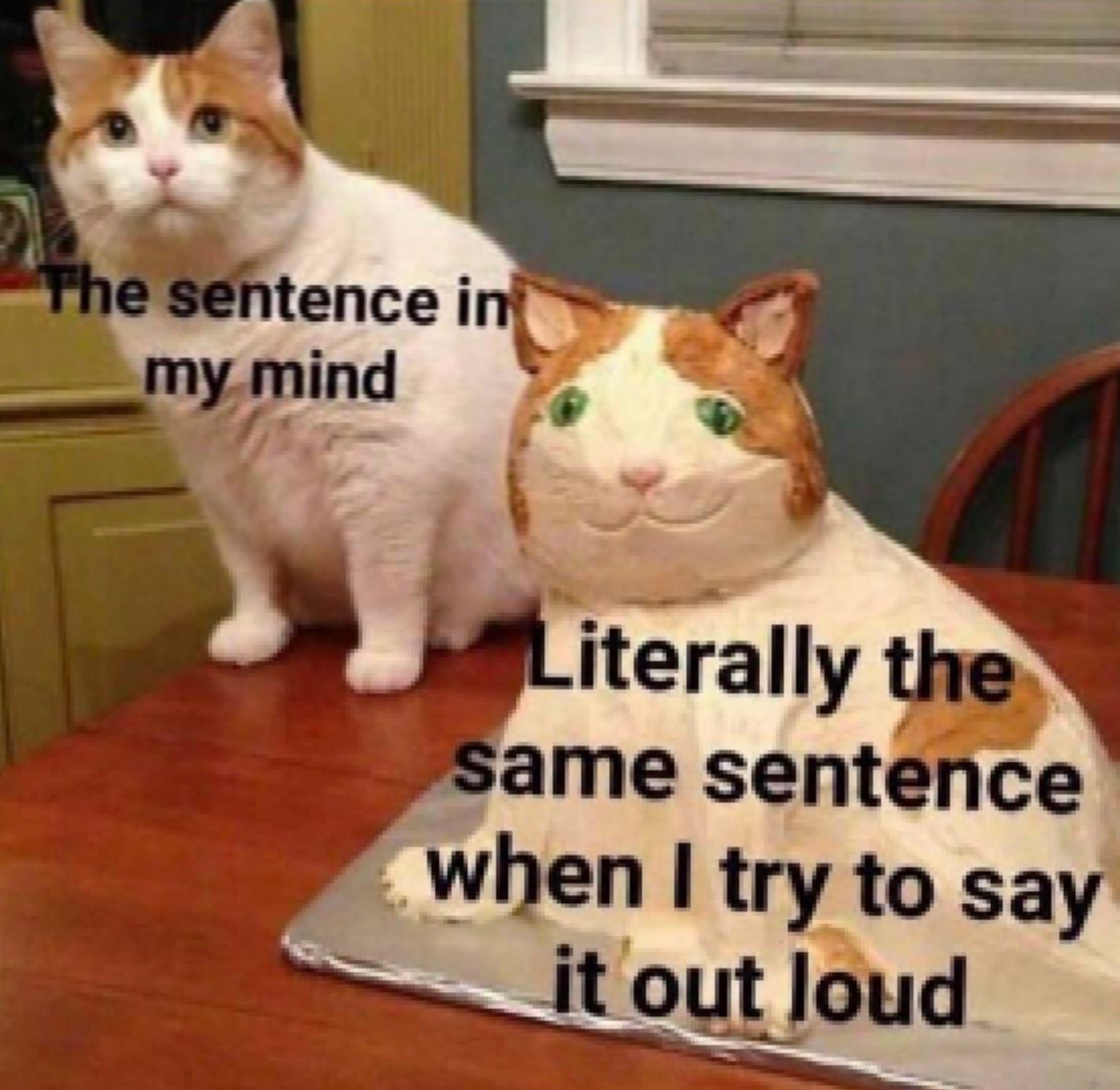 Sprung from the dynamic mid-2010s Tumblr tradition, this object-labeling meme limns the fraught line between representation and reality. The figure of the cat (chat), which for Jacques Derrida in “The Animal That Therefore I Am” (2002) represents the essentially social construction of nakedness, is to the Tumblr catposter representative of a particularly human desire for the spoken word (parole) to live as flesh and fur do, rather than stand in the place of what is always-already an absence.
