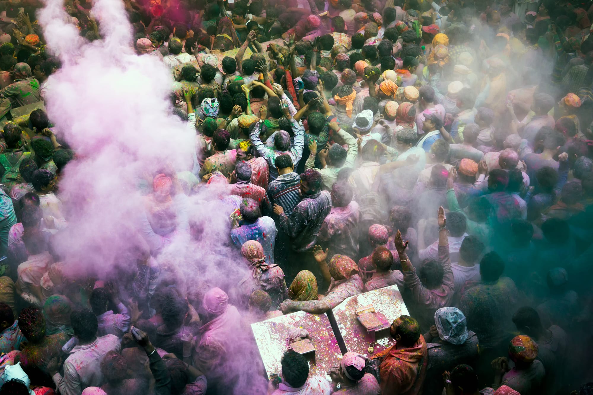 Naturally, the festival is celebrated on a much grander scale in South Asia with regional differences throughout. The most ubiquitous form of the celebration is when anyone and everyone, clad in cheap light clothing, launches colorful powders and pigmented water at each other. Welcoming spring and the season of harvest, Holi is inherently playful and joyous as it channels the love between Radha and Krishna.