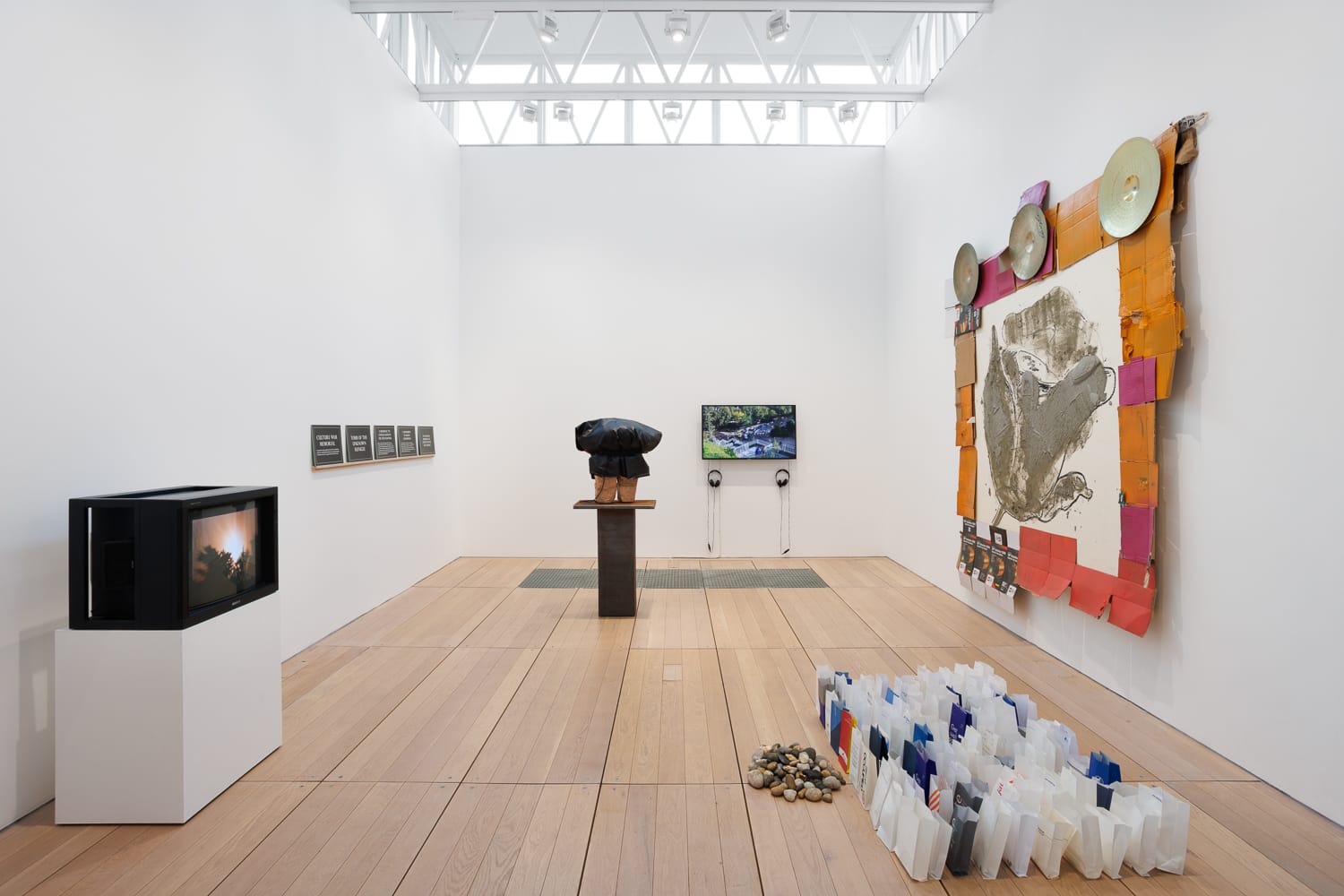 This piece emerged from a conversation, reproduced in the catalogue, about the fate of a woman in Iran who was accused of adultery and stoned to death. Raised up on a plinth, it memorializes that collective act of brutishness, and it is as forcefully nasty as it needs to be. And the very sight of it here, in all its pitiful rawness, reminds us just how sanitized monuments tend to be. They dare not tell the truth because the truth is too terrible to reveal uncensored.