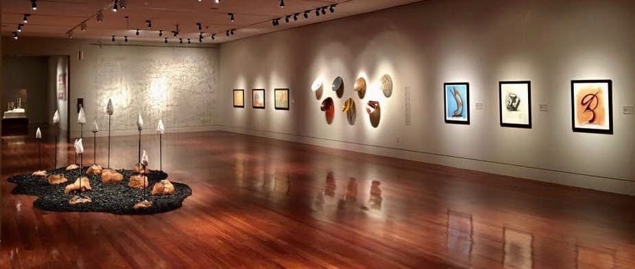 Installation view of Without A Theme (2017), curated by Tahnee Ahtone, at the Mashantucket Pequot Museum and Research Center in Mashantucket, Connecticut (photo by the author and used with permission)