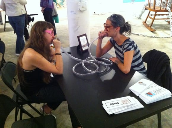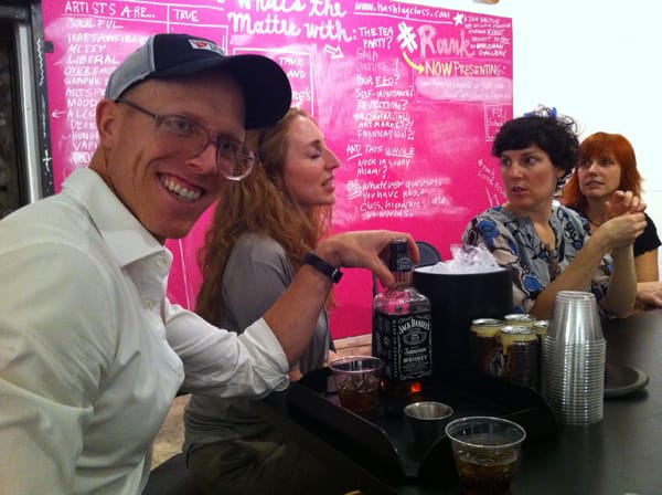Jennifer Dalton and William Powhida’s #Rank analyzed, deconstructed, and proposed solutions to the current state of the art world from myriad points-of-view. The art market and the orgy of fashion, money and social status that is Miami Art Basel and satellite fairs was the perfect staging point. They basically transported the Bushwick art scene along with our very own portable bar, and innumerable Twitter/blogosphere sympathizers — to Miami to talk — seriously, earnestly — while surrounding us was this incredible orgy. Being away from SEVEN, you felt alienated, alone, awash in a sea of capitalist, consumerist insanity, not a part of the art world. When sitting at that table of #Rank, by god, you are the real fuckin’ thing. People sat down to listen to what you had to say. And there was a curious gnawing feeling while you were sitting at the table, at least for me, one of the most junior artists present, that I was missing some of the spectacle …