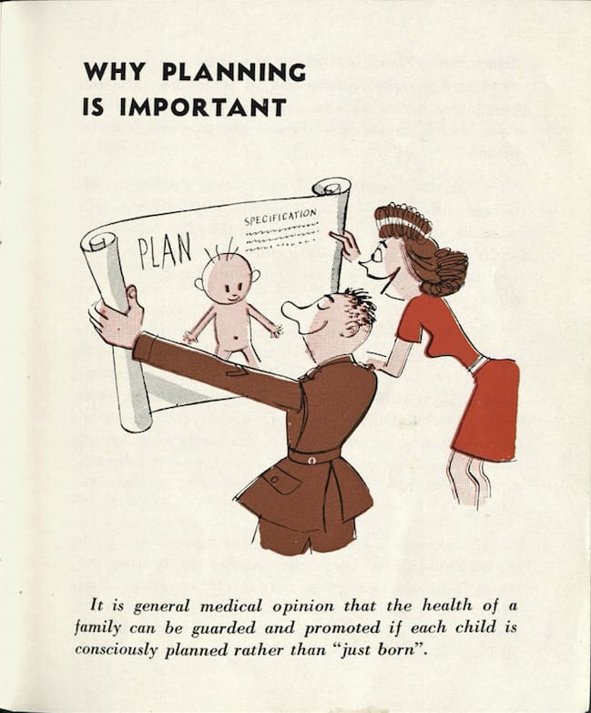 While the movement continued to champion older ABCL principles (including Margaret Sanger’s support of eugenics), it also became much more family-centered, arguing that strategic family planning was part of the nation’s commitment to a healthy and strong society. As one pamphlet from the 1940s claims, “The fact remains that having a baby is still the most important single event in any woman’s life — important to herself and her husband and to the future of her country.” The role of birth control was to ensure this event would happen properly, and at the optimal time.