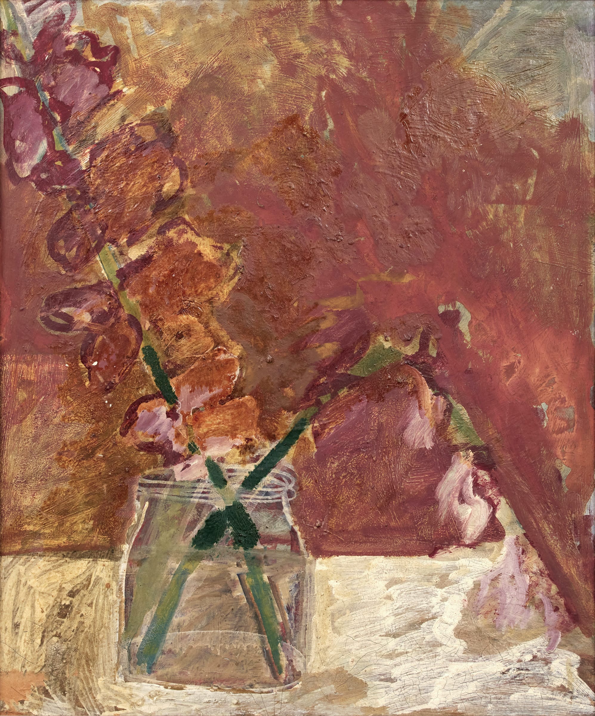 Brodie’s subject matter ranged from tenement walls to flowers and birds’ nests, from testaments of endurance to expressions of fragility and vulnerability. His paintings of anemones could be sweet but they never tipped into the saccharine. Rather, his heavily worked surfaces — reminiscent of tenement apartment walls covered with layers of paint — conveyed his desire to see whether innocence, however tenuous, could be regained through repetition and patient labor. Delicate touches of color and light accompany rough patches and uneven surfaces. What remains is a feeling of deep loneliness without a trace of self-pity. Even though his works portray fawns, birds, and flowers, along with other direct and tender subjects, it is not surprising that Brodie has never become popular. His rejection of irony and emotionally cool, flat surfaces in favor of sincerity and weathered skins of paint has contributed to his neglect.