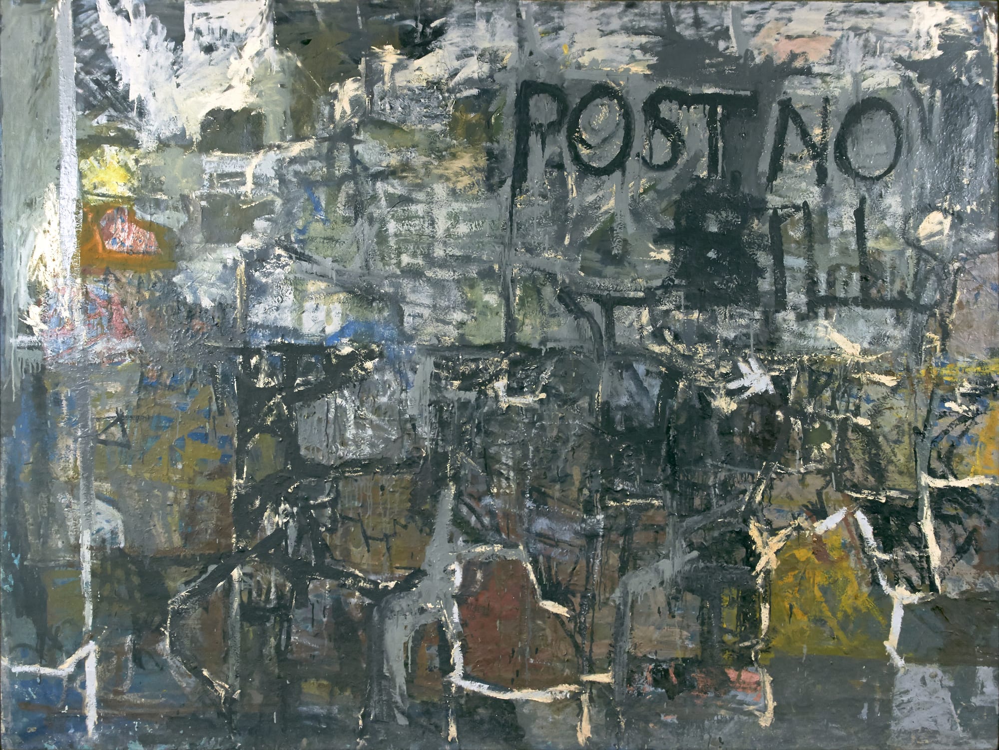 In “Post No Ills” (1966), Brodie depicts a tenement wall on which we see the words “post no bills" with the B partially obliterated. The wall is covered with the remnant of posters, layers of paint, and graffiti, none of which is legible. I see this painting as a metaphor for Brodie’s vision of what it means to be a painter. Whatever his feelings, however turbulent his life had been, he did not want that to become the subject of his work, even though he could not shed the darkness that he felt. In painting, he could find moments of beauty and defenselessness, as well as the endurance and will to survive, despite the circumstances of his childhood. Knowing this, is it tempting to say that Brodie is a late romantic painter, but I think this would be a mistake. He is far more challenging than that, especially in paintings such as “Butcher Boy,” which remains relevant today as it refers to a world in which a minority of the people seek to control every aspect of our lives, down to what we read, how we identify ourselves, and who we love.