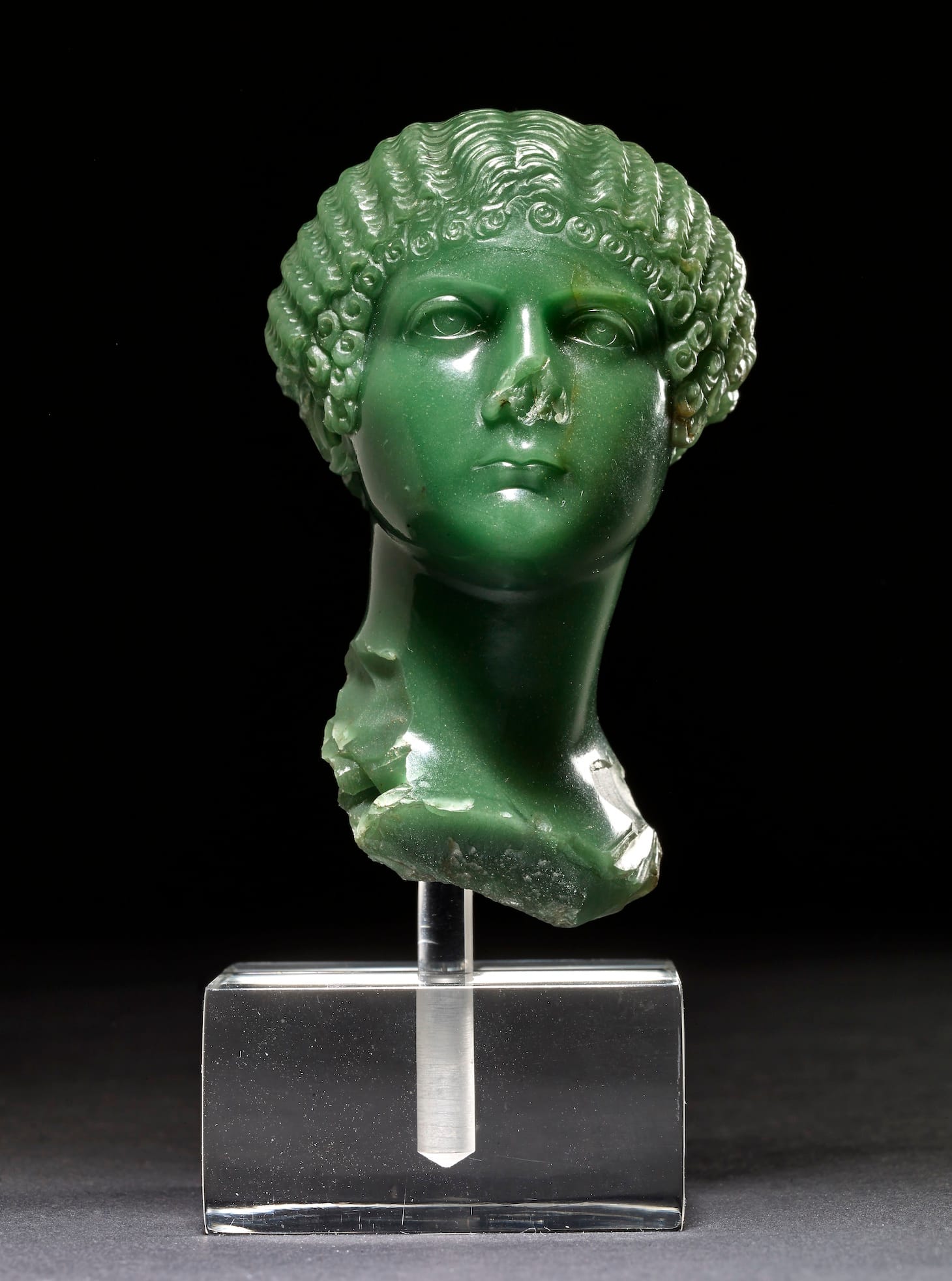 What are the most humanly affecting objects in this show? Not these many images of idealized Romans. They are as cold and as humanly improbable as they are magnificent — with the exception perhaps of a small portrait head of Nero's second wife, Poppaea Sabina. She is ravishing — and so touchingly realized by her sculptor. Women play quite a large part in the Nero story. Agrippina, his wily and overbearing mother, who was his chief advisor for a while, for example, at the beginning of his reign. Nero needed someone to hold his hand. He was only 16 years old when he became emperor, after all. Upon entering the exhibition you see a life-sized marble statue of this rather helpless, vulnerable looking, smallish boy-man who was being dragged into a terrifying future of factionalism and wars without end on various different frontiers. You surely cannot help but feel a modicum of pity for that child. Here was a boy who needed his mother. Unfortunately, she proved less useful, and less companionable, later. He had her murdered.