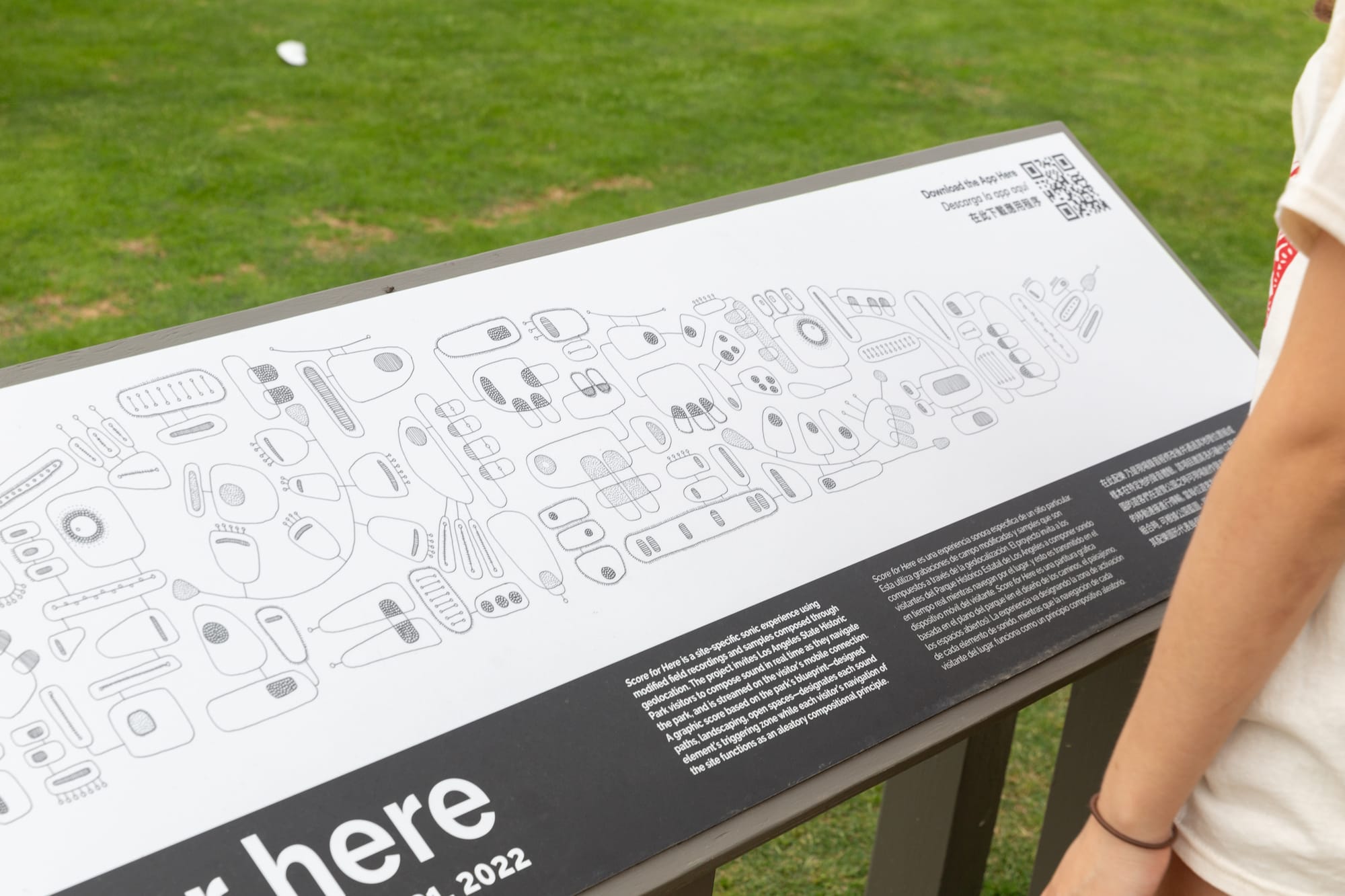 Clockshop, the arts organization responsible for the public artworks you see at the Bowtie and the Los Angeles Historic State Park in Chinatown, has commissioned artist Jimena Sarno — whose practice is centered on spatial and sonic experiences — to create a “score” based on the LA Historic State Park. Listen to the landscape change as you stroll through the greenery.