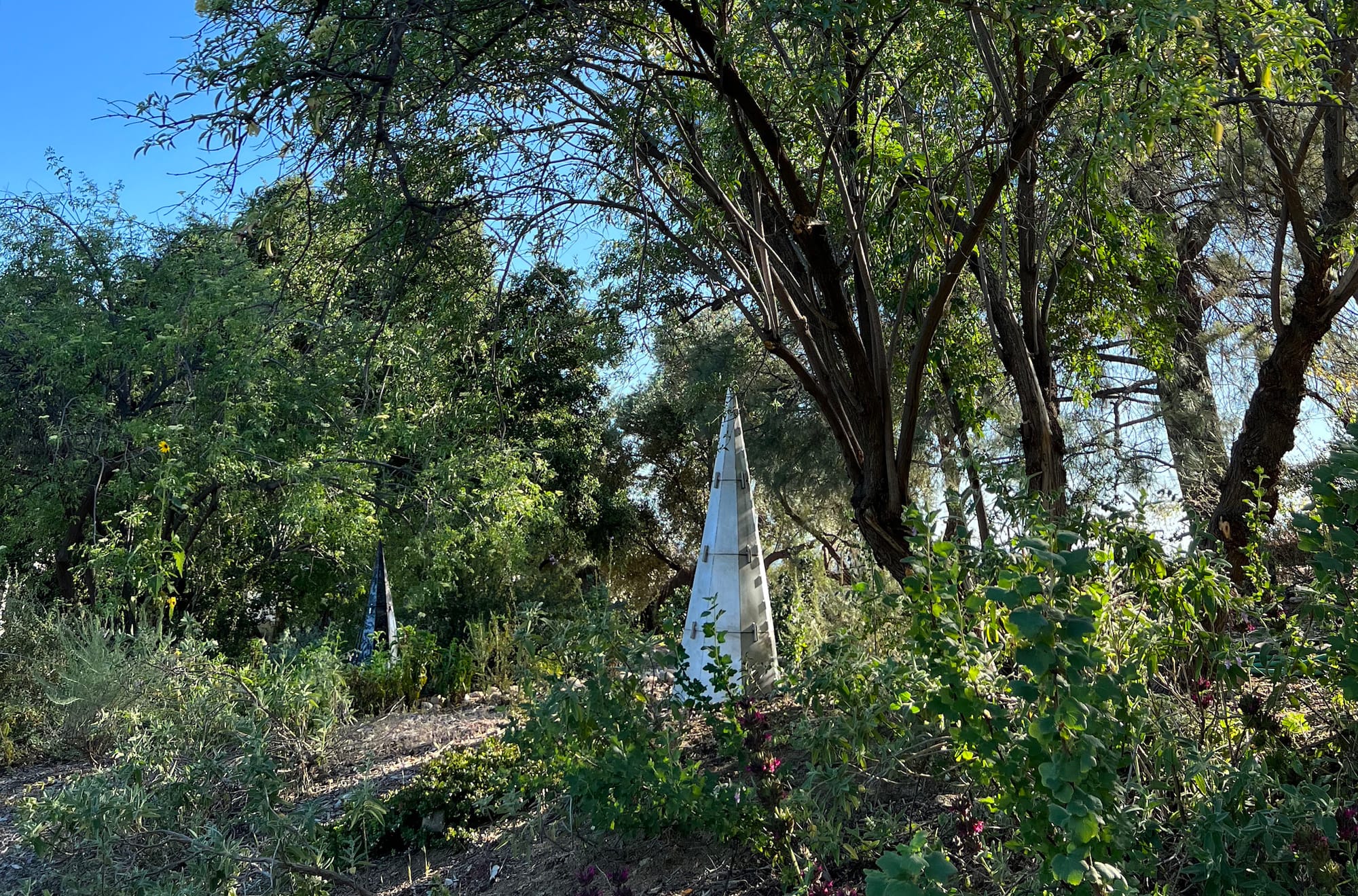The Theodore Payne Foundation for Wild Flowers & Native Plants is a nonprofit organization dedicated to the preservation of native California plants, operating its own nursery and education center in Sun Valley in an effort to reach out to the public with programs on propagation, seeds, and general courses on botany, horticulture, and ecology. Part of their initiative includes the Theodore Payne Art Gallery, where Studio Tutto — a collaboration between artists Sofia Laçin & Hennessy Christophel — has recently installed their Seed Spires sculpture series outdoors in addition to a site-specific painting inside the gallery space.