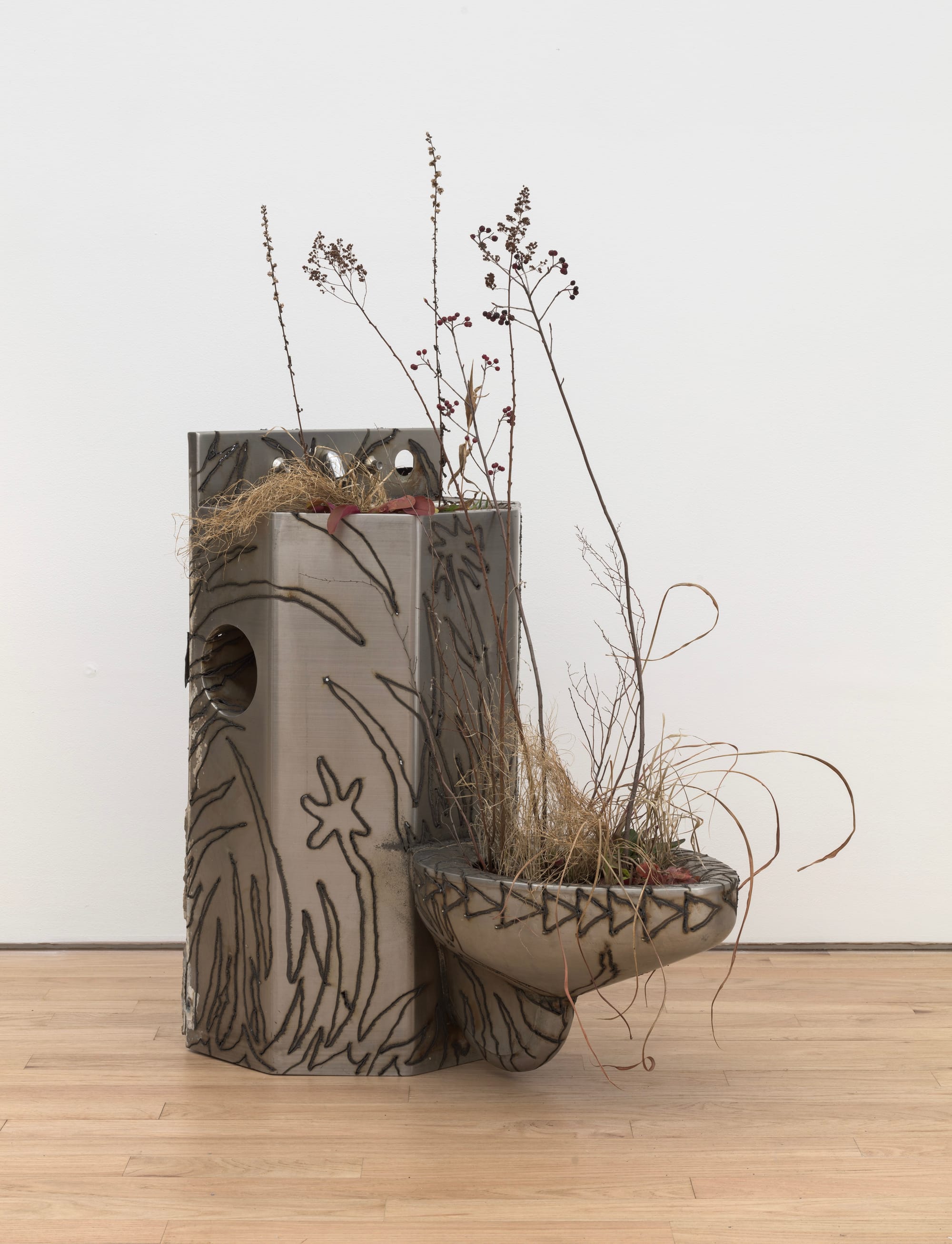 Saif Azzuz is a Bay Area-based Libyan-Yurok artist who certainly deserves more attention. In his first solo exhibition in New York, he looks into the colonial history of Lower Manhattan’s Collect Pond Park, located just two blocks from the gallery. Lushly painted acrylics evoke a freshwater pond in the park that once sustained the nearby Lenape village of Werpoes. Other works, including an arabesque made from police handcuffs and a prison toilet turned into a planter, address the carceral system that White colonialism constructed on Indigenous land. —HB