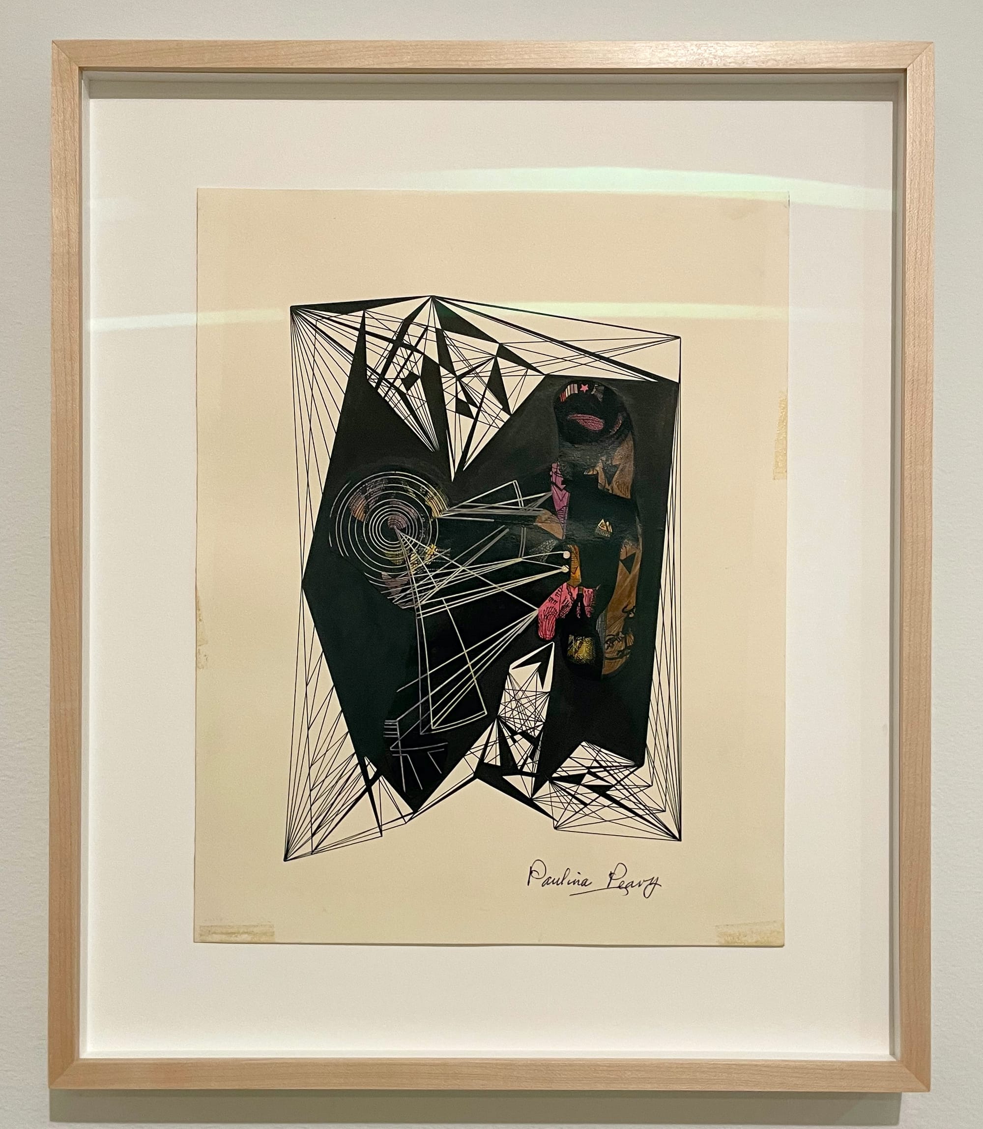Among this show’s most striking works is a drawing of a jagged black form enclosed by and containing lines radiating in different directions, with an amorphous multicolored shape on one side. The artist, Paulina Peavy, took her extraterrestrial experiences seriously: In the 1930s, she claimed to be transmitting information in her art from an alien being named Lacano, whom she’d encountered during a seance.