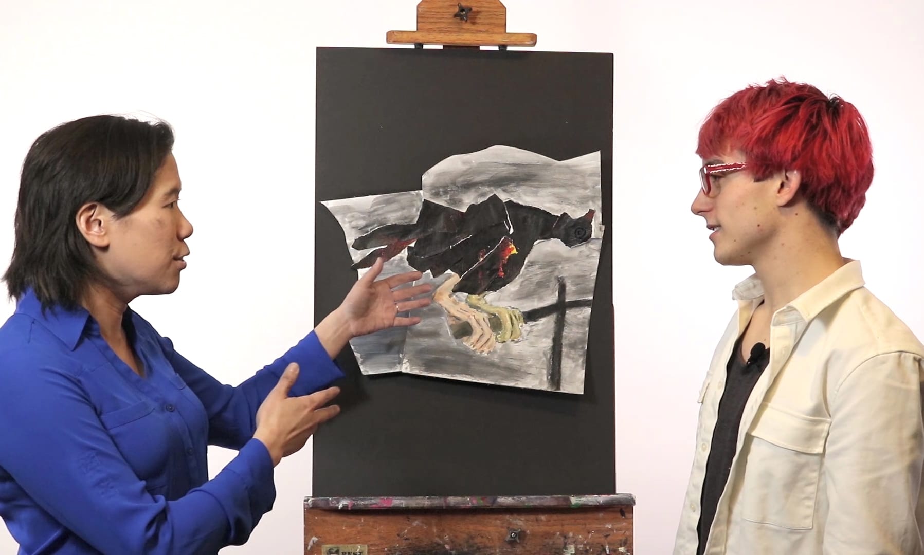 For now, many of Art Prof’s critiques are presented as video, with several different options, including group critiques of a single work and portfolio critiques. Lieu said that while the video critiques are by invitation, anyone can submit an artwork for a one-minute audio crit online via Instagram. Either way, the works are discussed based on photos, and Lieu and her staff only see the works in person when they invite artists into Lieu’s home studio for what she calls Crit Chats. “We shoot all of our videos at my home, so for this reason, we only invite people who I know personally,” Lieu said. “I actually live near Boston, so most people we invite are in that area. We aim to invite artists who represent a range of ages and media. For example, we have invited high school students as well as people who are retired.”