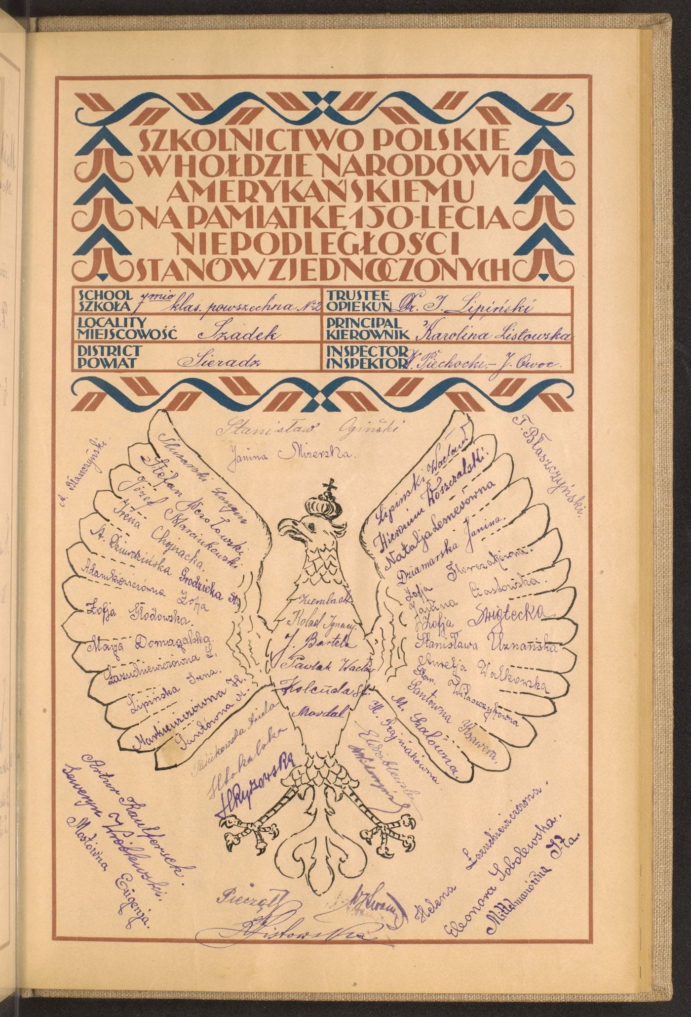 Some of the signatures, particularly those from schools, are arranged in playful patterns, whether filling a sketch of the eagle on the Polish coat of arms, or spelling out “Polska” in cursive. Each was signed over an eight-month period by people ranging from national government officials to local religious representatives, along with thousands of school children from across the country, acting as an informal census. Original illustrations by artists like Zofia Stryjenska, Wladyslaw Skoczylas, and Ferdynand Ruszczyc adorn the pages in a volume divided by provincial district. While the volumes have been at LOC since 1927, after being presented to President Calvin Coolidge in 1926, the online portal makes them accessible to researchers around the world.