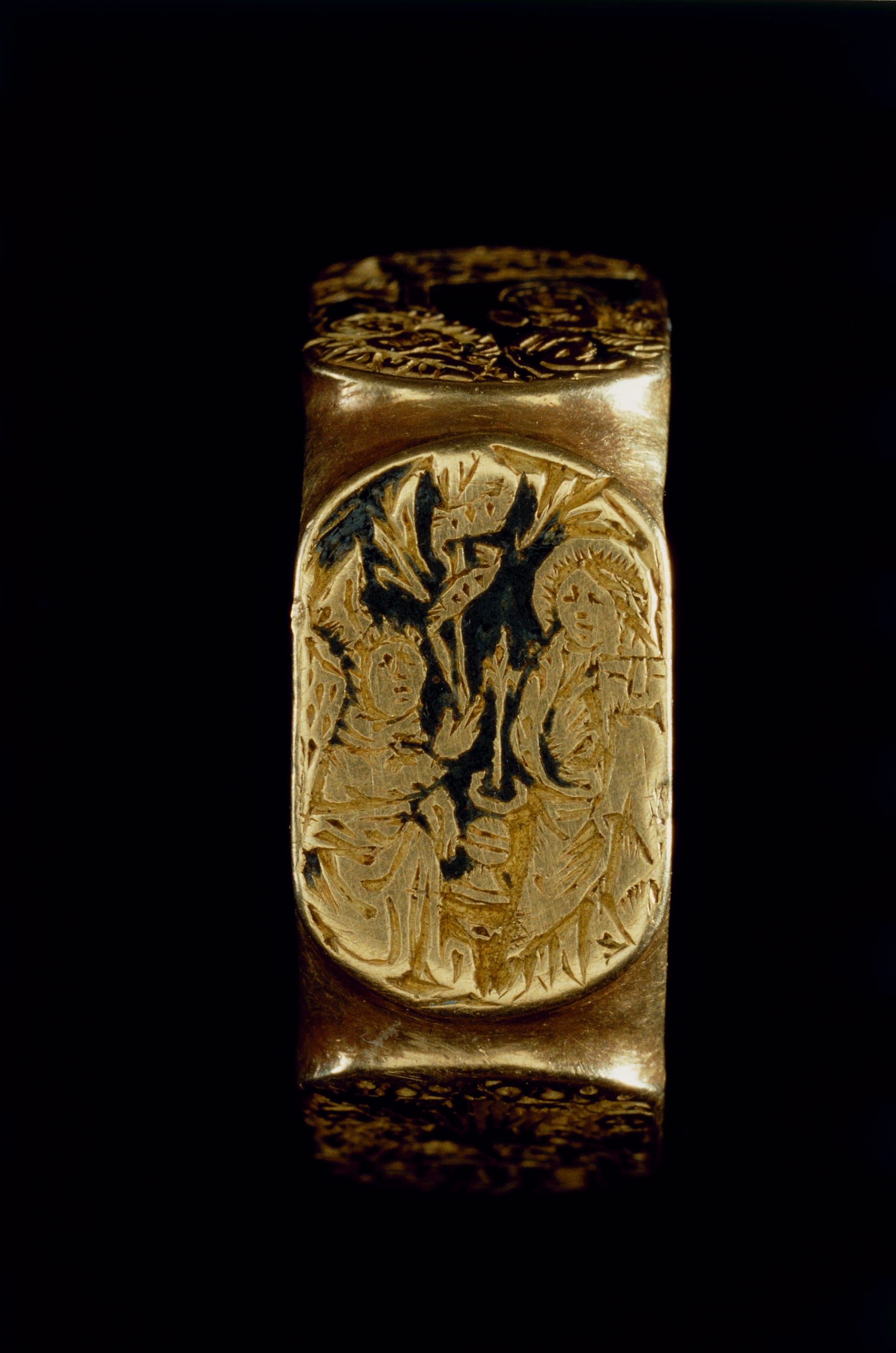 Everyone owned iconographic rings in the 15th century, from the wealthy to men identifying themselves as husbandmen, the working class. Nobles gave these rings out as cheap party favors at New Years. The discovery contains about twice as much gold as a thin ring, and so the bead was out of the reach of the poorest, certainly, but on its own, the bead was absolutely within range of more middle-class people.