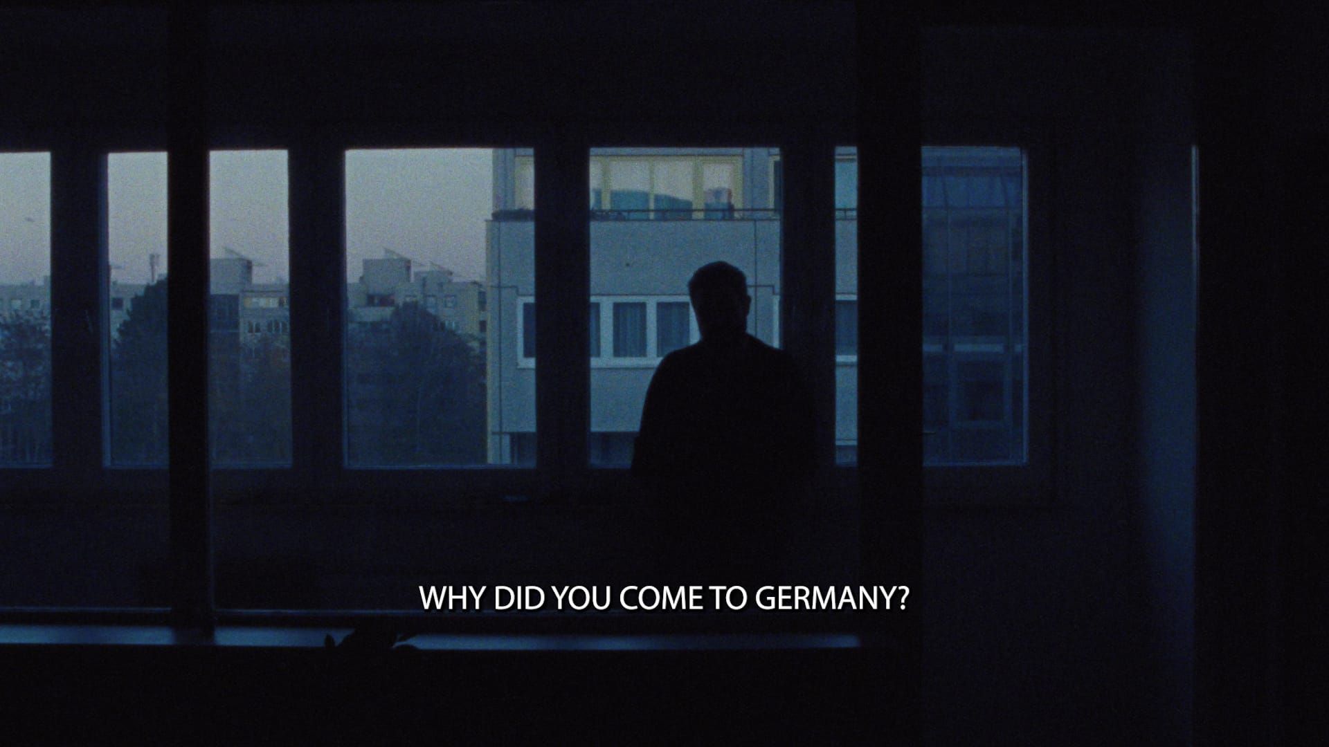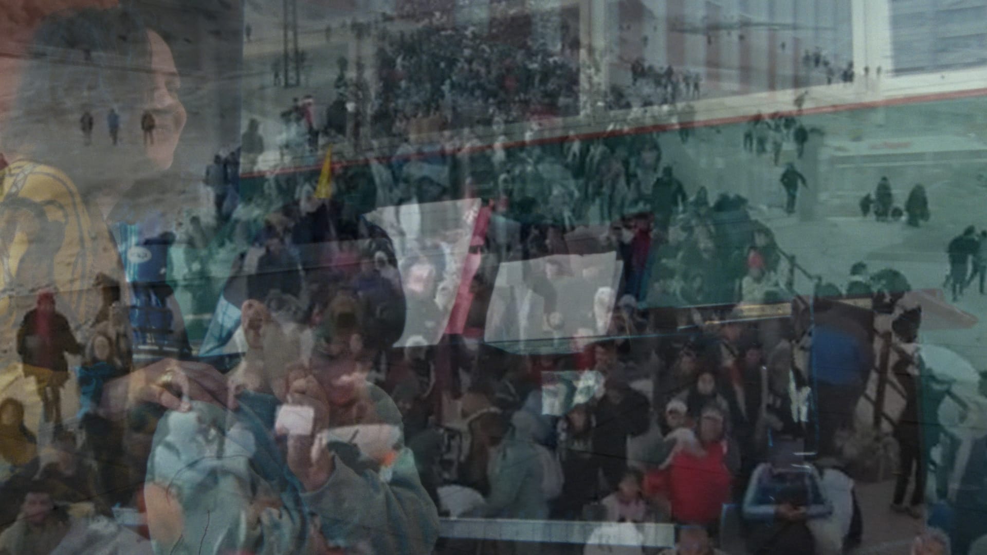 Where Wenders’s angels — invisible to everyone except the children they metaphorize — roam around a desolate Potsdamer Platz in 1987, less than two years before the fall of the wall would unleash a slow-moving tsunami of gentrification, al-Sharif’s camera meets the impermeable glass and steel surface of corporate finance. The city has been occupied by capital, its buildings only offering flat, reflective surfaces with no apertures or access points for the disoriented gaze of the unwelcome. When the camera does manage to broach a space of interiority, it enters the home of an Armenian-Lebanese father, standing before a window, answering the invasive questions of an oblivious off-camera interviewer about the family’s assimilation into their new country. The bureaucratic violence of an integration policy that marginalizes and excludes is palpable as the camera hovers around the modest dwellings, twice panning past a television screen showing aerial footage of long-extinguished neighborhoods in Gaza recorded by photojournalist Yaser Murtaja, among the hundreds of young innocents brutally gunned down by Israeli soldiers during the 2018 March of Return.