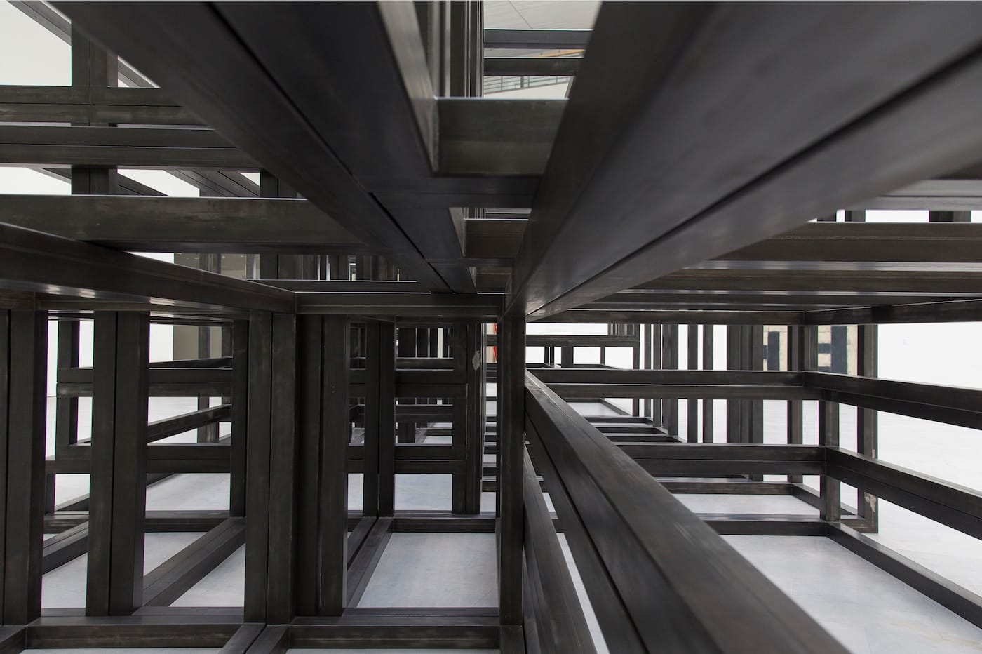 In “China Piled-Up” (2014), for example, there is a three-dimensional black latticework, visually like that in his early paintings, composed of stacked steel rectangles. In the Landlines, we find neither the conflicts that began in his 1970s art and came to the fore in the 1980s. Nor do we see the ideal harmony of the 1990s Walls of Light. Instead, the Landlines are Scully’s landscape paintings, showing the shore, the water, and the sky in varied colors. We see the world as it is, but presented abstractly.