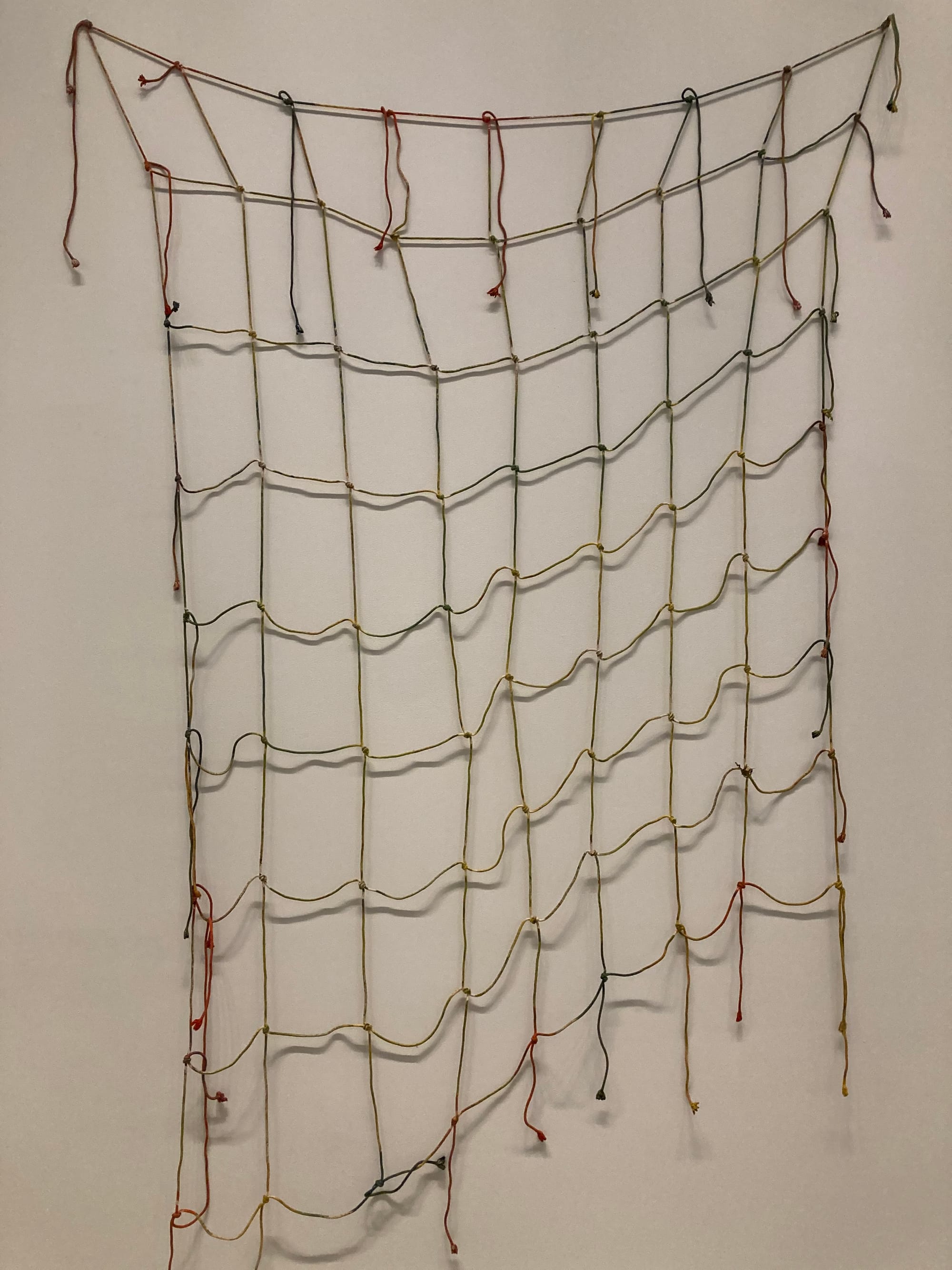 “1972/F003” (1972), by the French artist Claude Viallat, is among the most radical departures from traditional painting formats. This work is composed simply of dye on a wide, delicate net. The dye varies in intensity and color, requiring the viewer to step closer to see the gradations.