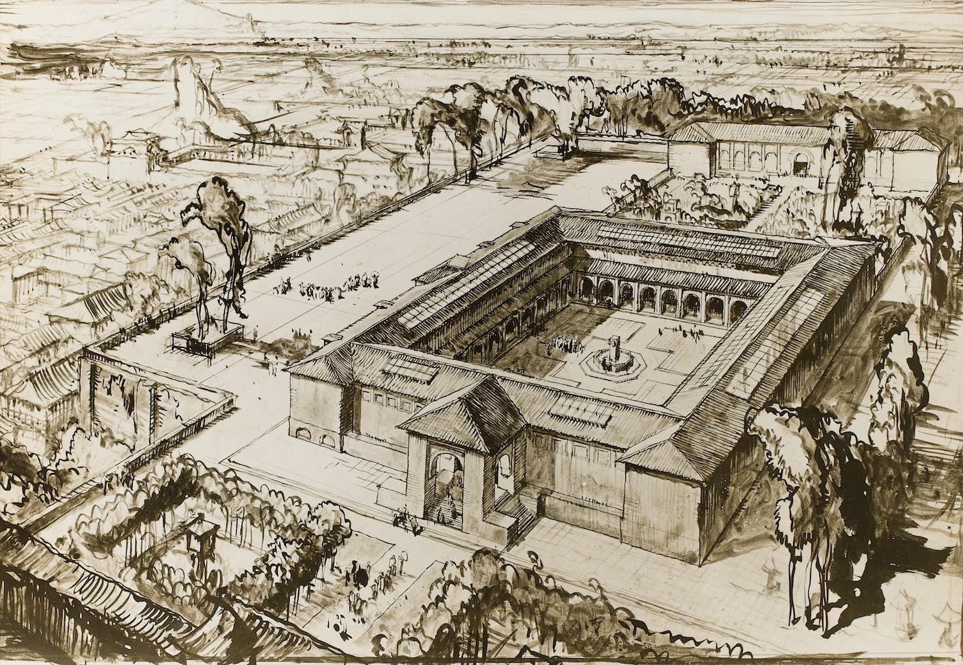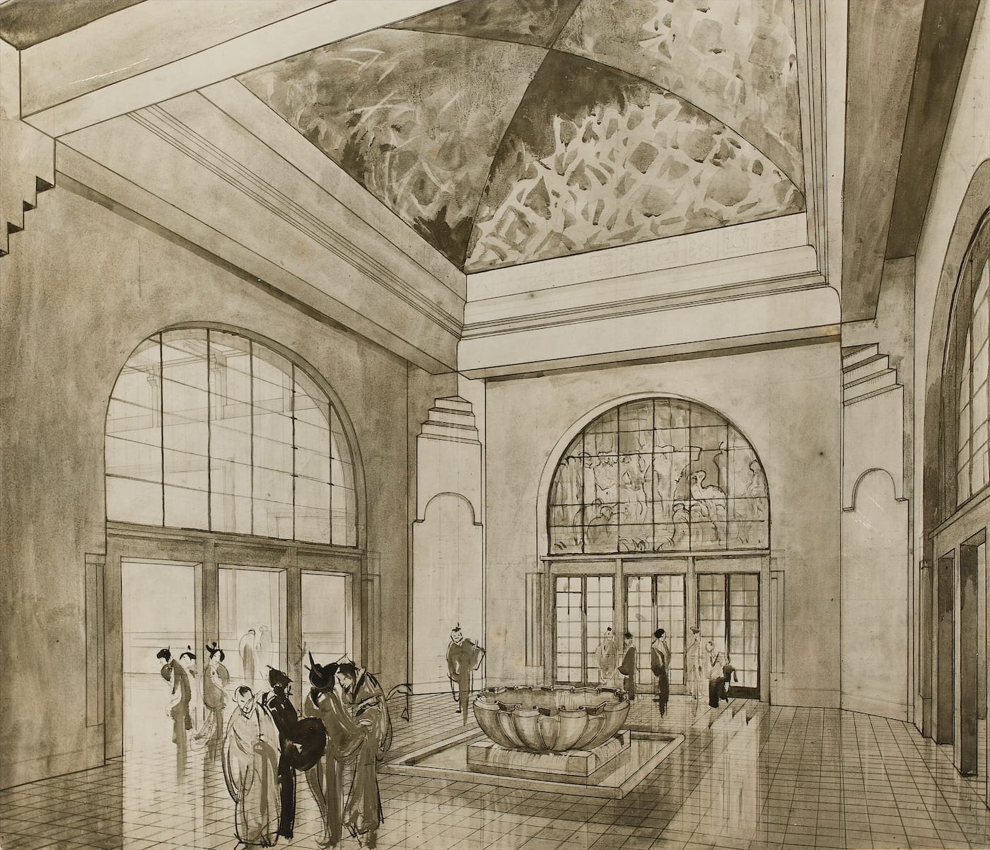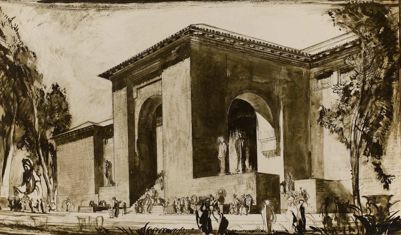 As for the title of the exhibition, it refers to Brangwyn’s failed attempt to take his collaborative interest in Japan even further, by designing a Western art gallery in Tokyo called the Sheer Pleasure Pavilion. Alas, the pavilion’s patron, shipping tycoon Kojiro Matsukata, fell on hard times with the 1927 economic crisis and the project fell through; illustrations in the exhibition show its never-built elegance. By the time Brangwyn died in 1956, he was something of a recluse, never even seeing those Rockefeller Murals in New York after their installation. Urushibara, meanwhile, continued to work in Europe until he was “involuntarily repatriated” from France to Japan in 1940. Sheer Pleasure brings together some examples from their partnership, as well as other Japanese artworks from Brangwyn’s collection, visualizing this early 20th-century bridge between two distinct printmaking traditions.