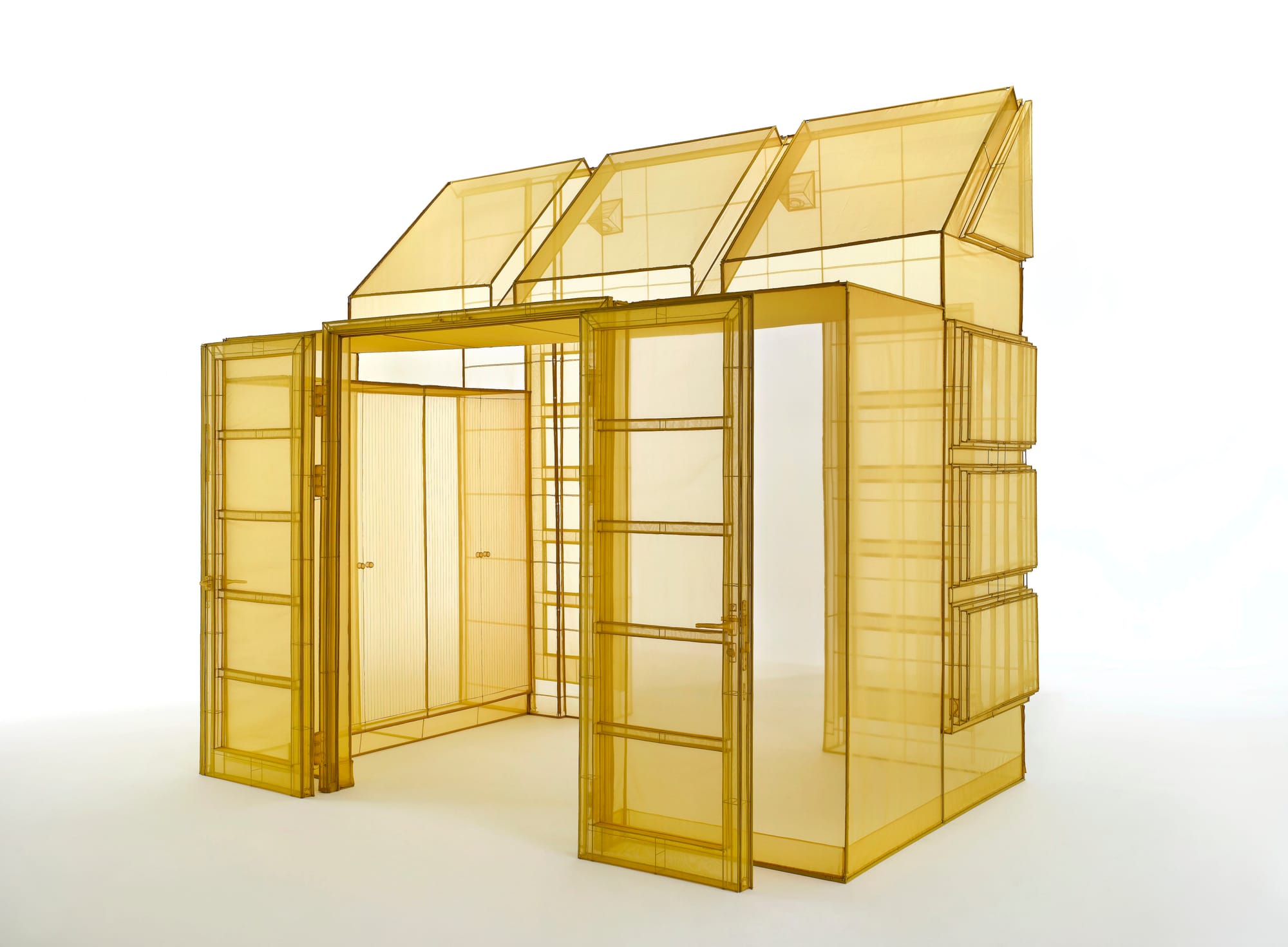 Western media reports on migration tend to center on dangerous journeys through violent border regimes. Here, the curators wisely focus on migrants’ multiple histories and destinations. Do Ho Suh’s large fabric structures produce, with delicate precision, the remembered spaces of his childhood home in Seoul, South Korea. Viewers pass through rooms of translucent pink or lemon-yellow fabric stretched over thin metal frames. The structures acknowledge the impermanence of home, while extruding personal memories into a public, collective space. Domestic interiors also appear in the paintings of Aliza Nisenbaum, who depicts the everyday intimacies of a migrant family from Mexico living in New York, and the portraits of Rineke Dijkstra, who has photographed a Bosnian refugee named Almerisa inside her home over 25 years. These quotidian scenes expand the geographic and temporal locus of migration beyond the limbo of transit.