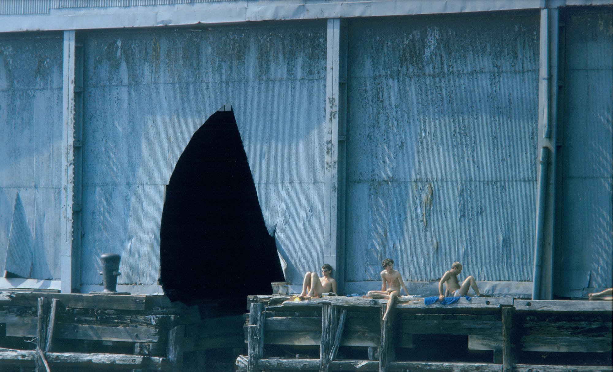 Following the 1969 Stonewall Riots, the aforementioned piers became the go-to place for sunbathers, no-strings-attached and semi-public sexual encounters, urban exploration, and unleashed artistic freedom. Peter Hujar, Frank Hallam, Shelley Seccombe, Leonard Fink, Stanley Stellar, and Alvin Baltrop were among some of the candid photographers who documented tan lines and trysts, while visual artists including David Wojnarowicz, Tava (Gustav von Will), Keith Haring, Gordon Matta-Clark, and Andreas Sterzing converted the derelict structures into sites of magnificent, uninhibited murals and environmental art.