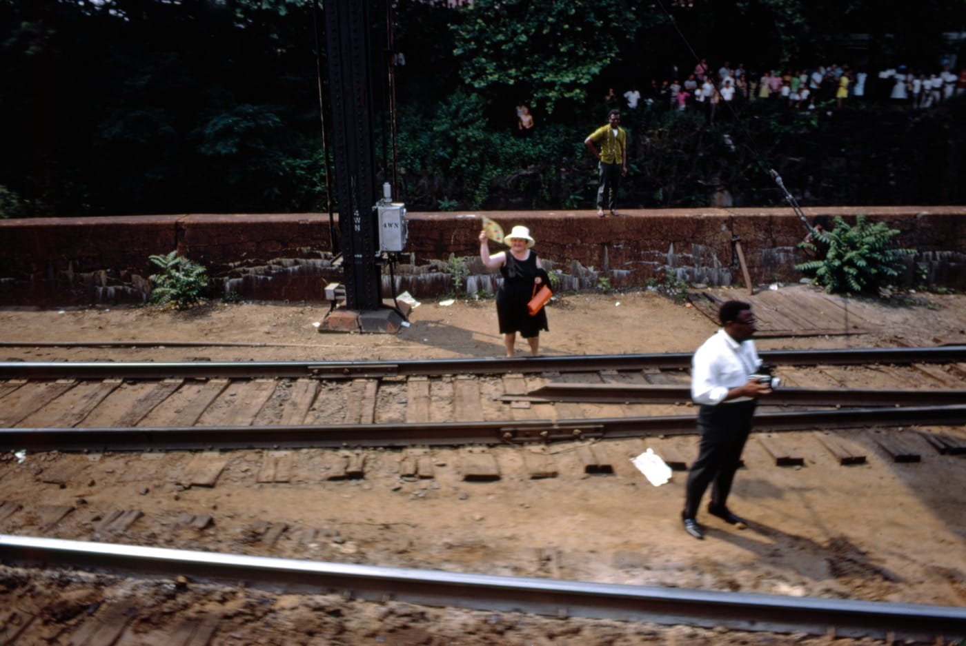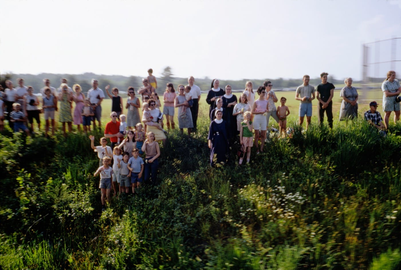 There’s something about the scene, both in Fusco’s description of his experience, as well as in the symbolism of the event, that feels quasi-biblical — the funeral procession, the sudden burst of light, the hundreds of devotees flooding the tracks in silence to pay their respects — and his photos reflect that gravity in their tone and their rhythm. The expression “to bear witness” has become something of a sanctimonious trope, a cheap excuse to observe (and in the worst cases, exploit) other people’s tragedy with a voyeuristic and complacent eye. The watchers in Paul Fusco’s scenes, though, imbue the phrase with its original meaning: to share the burden of another’s pain, to confirm with one’s own eyes and body that something is real — and in the case of these photographs, that Bobby Kennedy was really dead.