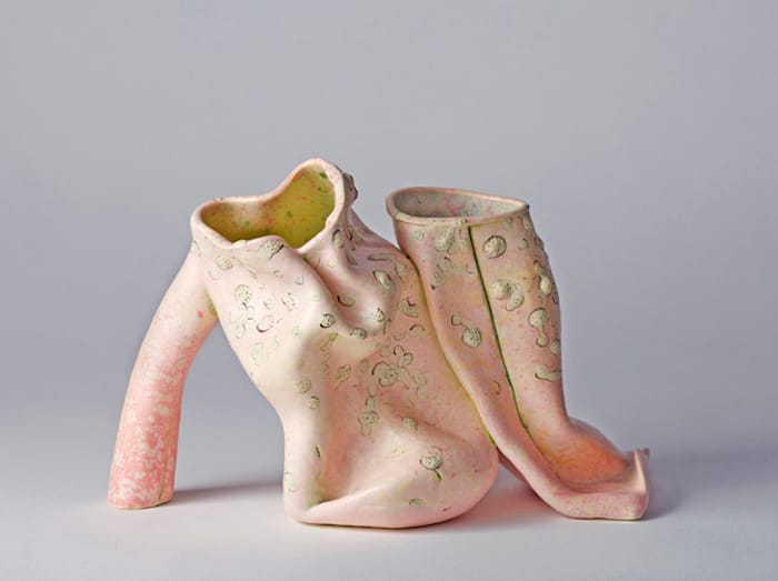 Elisa D’Arrigo, “pink incliner” (2015), glazed ceramic, 9 1/2 x 6 x 5 inches (click to enlarge)
