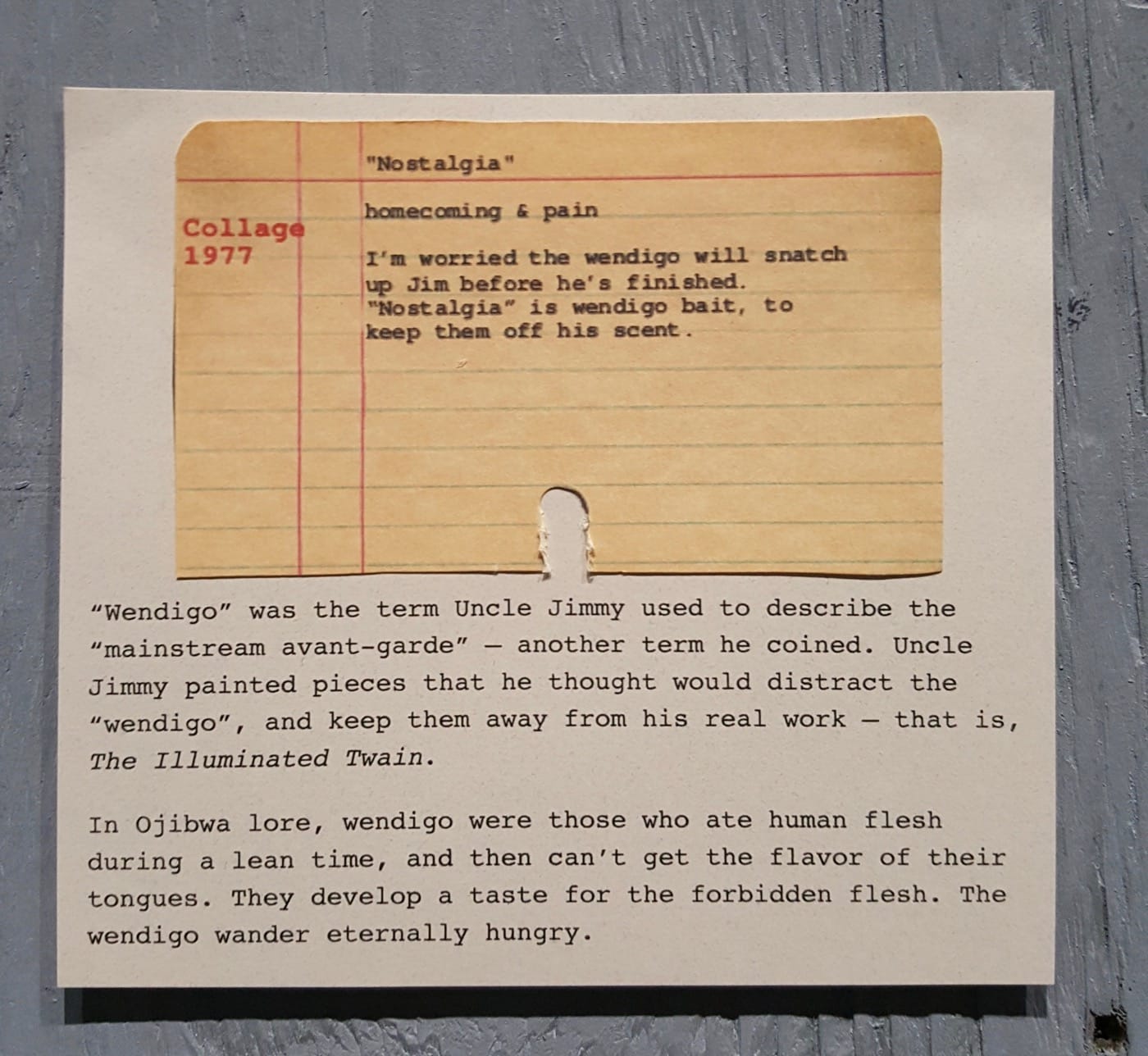 Master dramatizes the current state of play in the art world (but the lessons carry over to other arenas of culture, like sports), demonstrating not just that we privilege the individual personality too much; rather, we don’t know how to look at art without leaning on that crutch. It makes this argument by completely inventing an artist, James Leroy “Uncle Jimmy” Clemens, and revealing him to the audience through the appurtenances of voicemail messages, eulogies, ceremonies, artifacts from the places he lived, and pieces of his magnum opus: “The Illuminated Twain,” a multifaceted, bricolage work that’s a response to Mark Twain’s The Adventures of Huckleberry Finn undergirded by anger and bitterness.