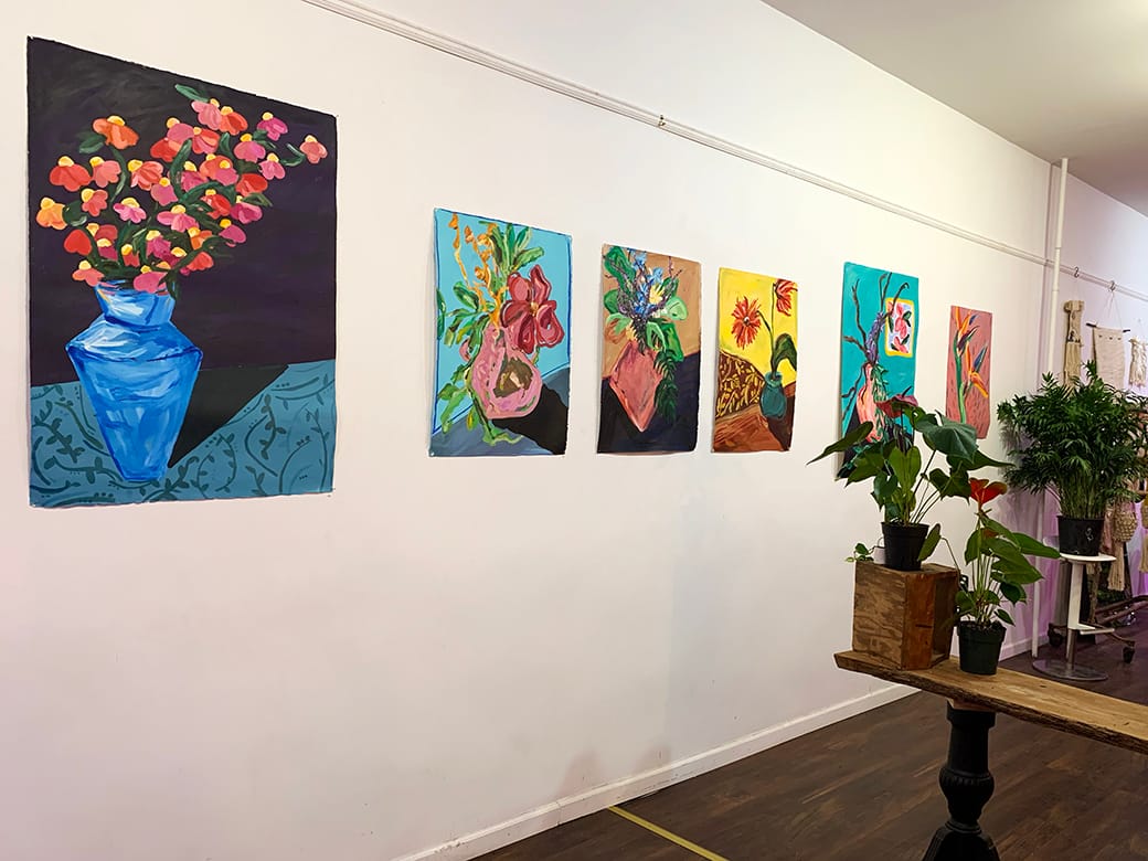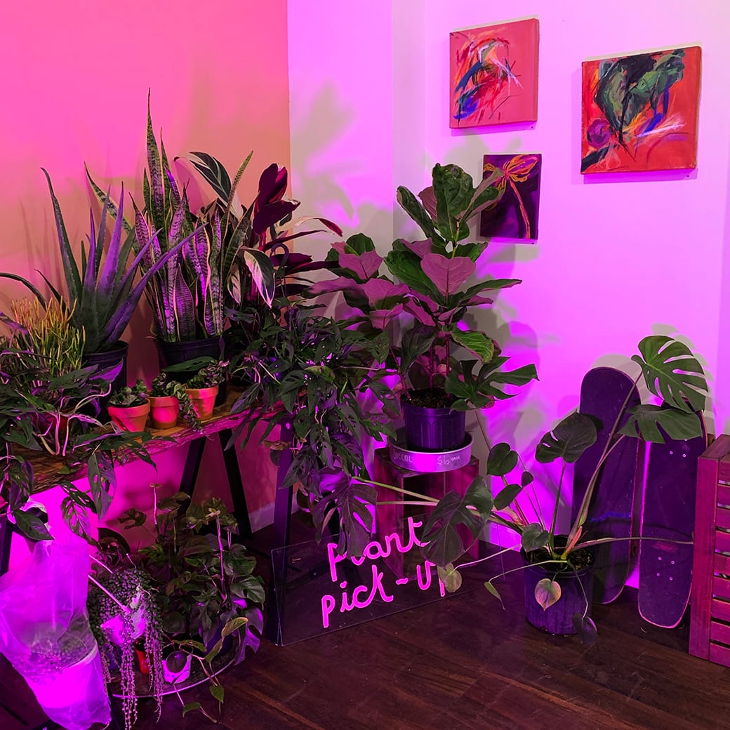 Inside the plant shop Soft Opening, owner Kristin McLaughlin hosts biweekly exhibitions, and for GGN it was all about greenery. The colorful and gestural works of Haley Cimillo were perfect for the space, resting comfortably between art and design, and thus palatable for almost any interior. As McLaughlin discussed, “Featuring a rotating roster of local artists and throwing weekly parties for them has been a great way to show people the shop who otherwise wouldn’t have known about it. So it’s a great networking tool and an all around positive experience for everyone involved.”