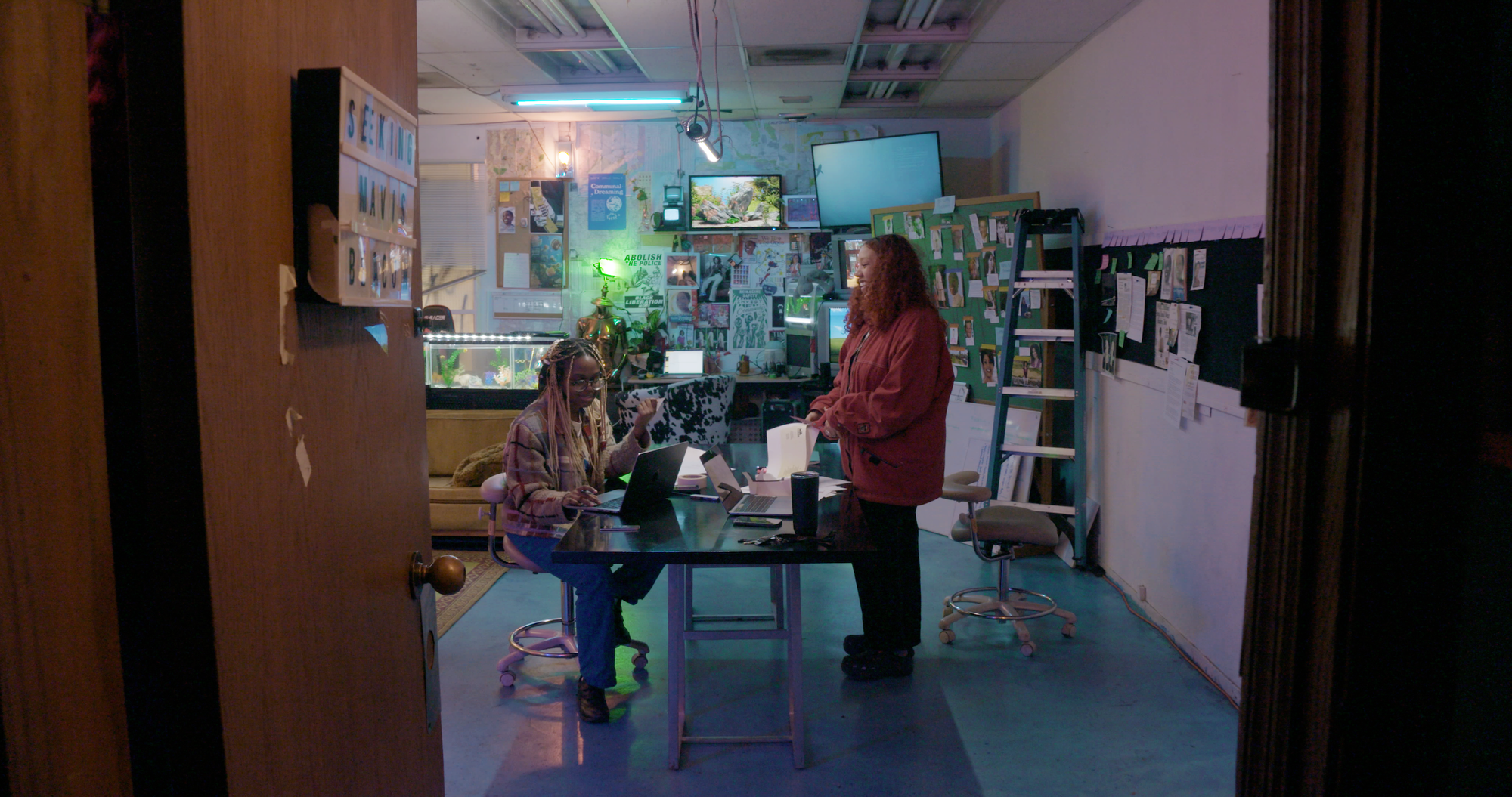 More candid than most investigative documentaries, the film is set up as if viewers are watching a mid-web era desktop projection, with a user opening multiple files ranging from documentary footage of Jones and Ross to related memes along with viral pop-culture moments and content by prominent Black creators. It also features incisive commentary about digital agency, gender, race, artificial intelligence, and cyberspace from transdisciplinary artist Stephanie Dinkins and Glitch Feminism: A Manifesto (2020) author Legacy Russell.