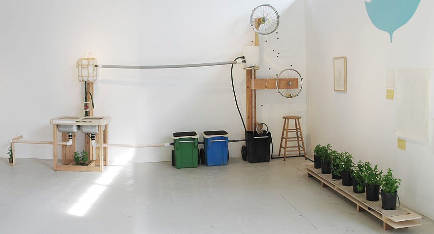 Rather than an individual artist, Future Farmers is a design collective that works with artists to accomplish environmental projects. Part events, part installations, the collective’s works are provocative, and traffic in the kind of social group-forming and exchange projects well suited for art fairs and college campuses. A favorite is “Victory Gardens”, an ongoing project in San Francisco that transforms green spaces in public places into food-producing gardens. Other works make the process of rainwater recycling visible or create lab kits to help scientists sort algae strains.