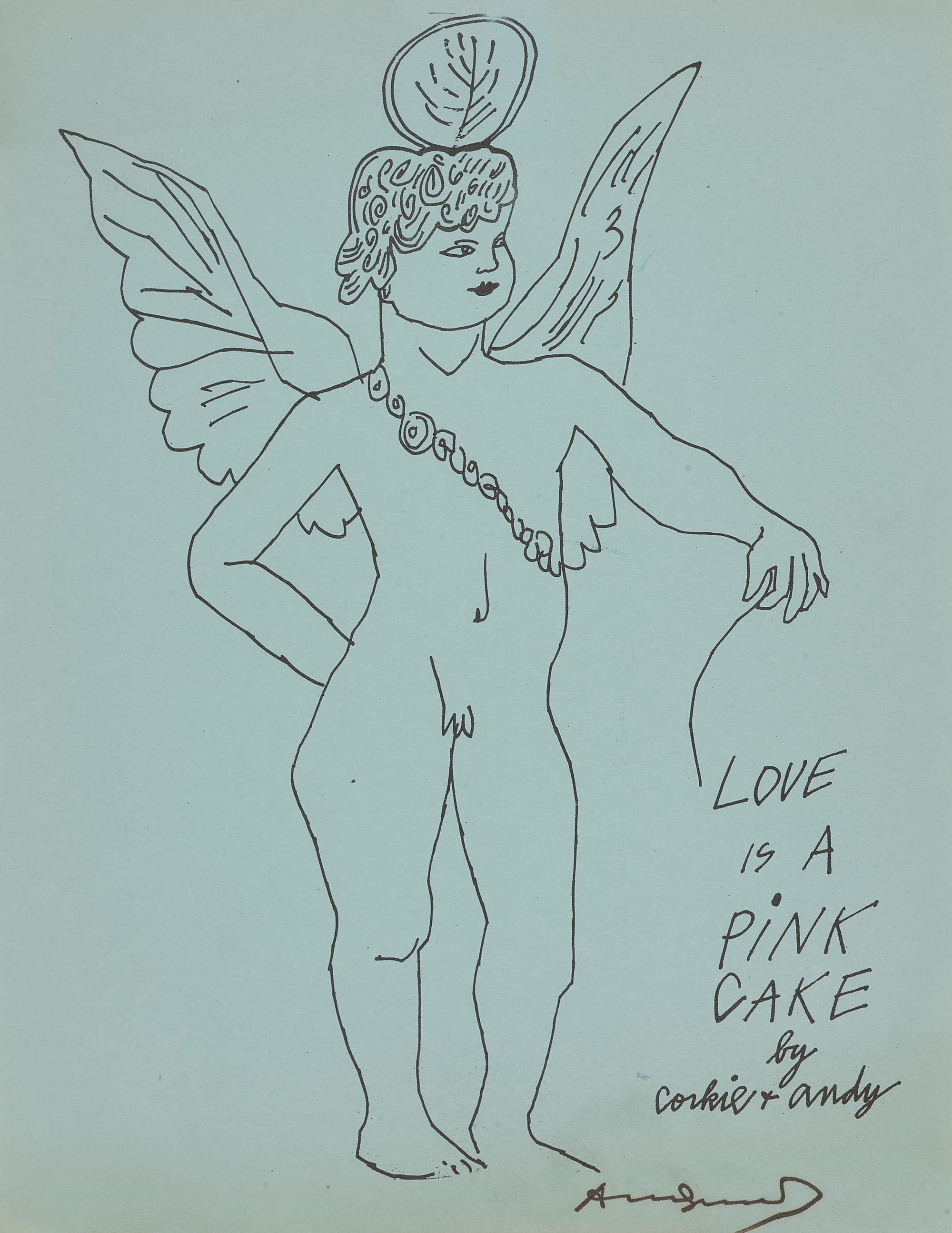 Another self-published Warhol book, Wild Raspberries, from 1959, sold for $47,812 against an estimate of $30,000 to $50,000. Warhol collaborated with Suzie Frankfurt and his mother on the tongue-in-cheek recipe book, which has instructions that include “To be served to very thin people” and “Always to be eaten alone in a candlelit room.” This particular copy was made out to D.D. Ryan, a fashion icon and Harper’s Bazaar editor who played a hand in the development of Kay Thompson’s famous Eloise character.