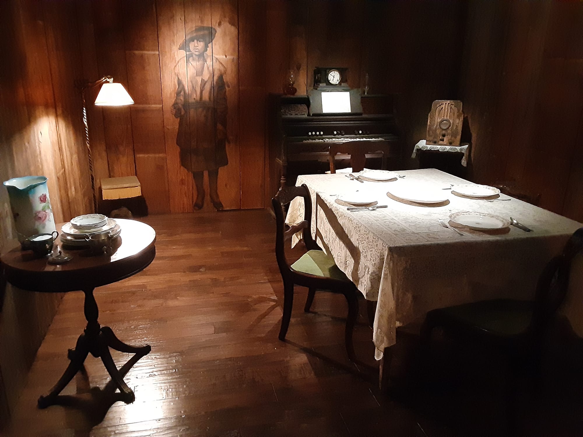 The show ends with Visitation (2001), commemorating Jackson Ward of Richmond, Virginia, the United States’s first major Black entrepreneurial community, founded in the 1860s. With the large tableau “Our Best” (2001), Lovell depicts the beginnings of the Black Southern middle class via life-sized portraits on recycled wood that refuse the persistent period imagery linked to sharecropping and the Civil War. And for the installation “Visitation: The Parlor” (2001), he sets softly lit place settings and lace, smelling faintly of stale whiskey and tobacco, around a dining table. An old radio plays blues and gospel next to a stack of Richmond newspapers dated to 1908. Two figures dressed in turn-of-the-century garb face one another from opposite walls of the room, as if the progenitors of this scene of family and community, the same tender heart within all of Lovell’s reconstitutions.