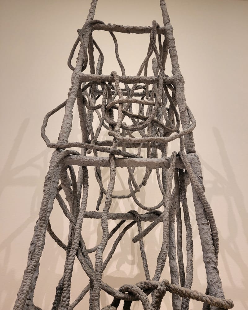 Hesse fans unable to travel to Oberlin will still find much to embrace in the catalogue, including the opportunity to revisit the work over time — though the bound-and-printed experience does lack the anchor of seeing "Laocoön" in person. The ladder-like construction, iced with dripping gray latex, stands alone as a strange, stately monument and witness not only to Hesse’s incredible aptitude for material and formal exploration, but to the results when the surrounding forms and figures step off the paper and into three-dimensional reality.