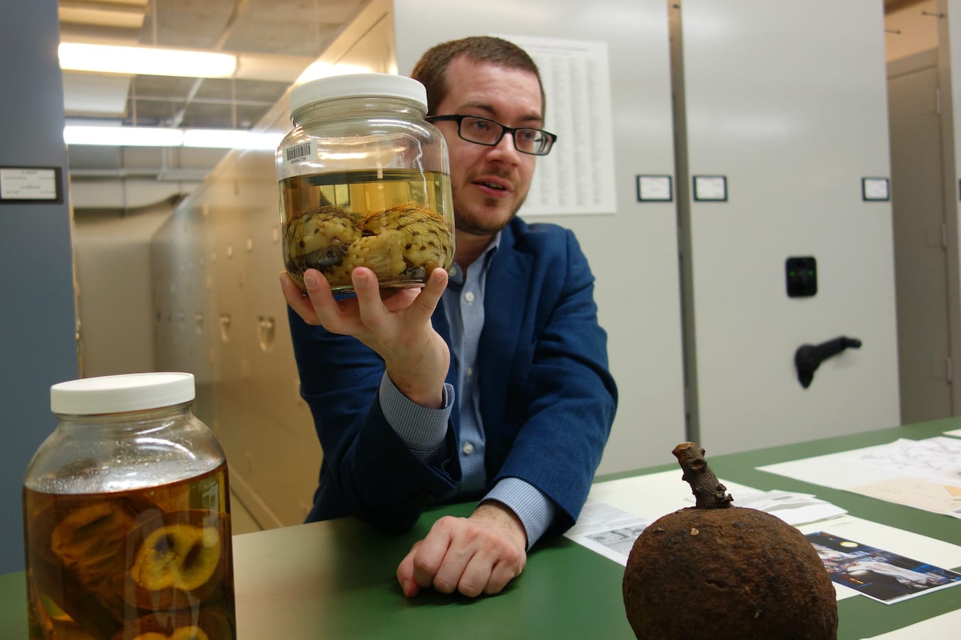 Dr. Matthew Pace in the NYBG herbarium (photo by the author for Hyperallergic)