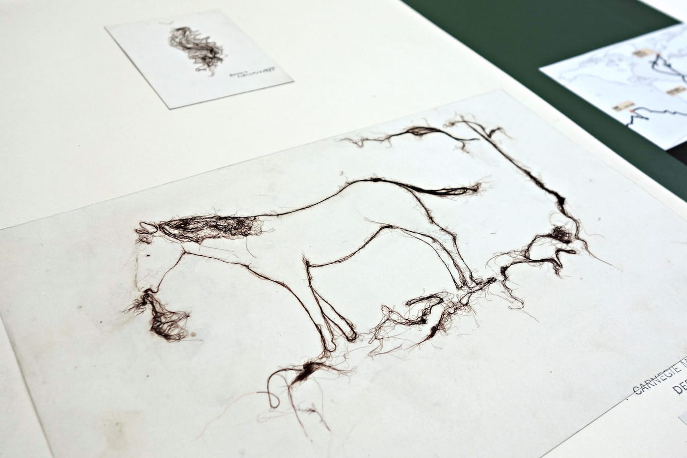 An early 1900s specimen with seaweed shaped into a horse (an unusual choice for a herbarium) (photo by the author for Hyperallergic)