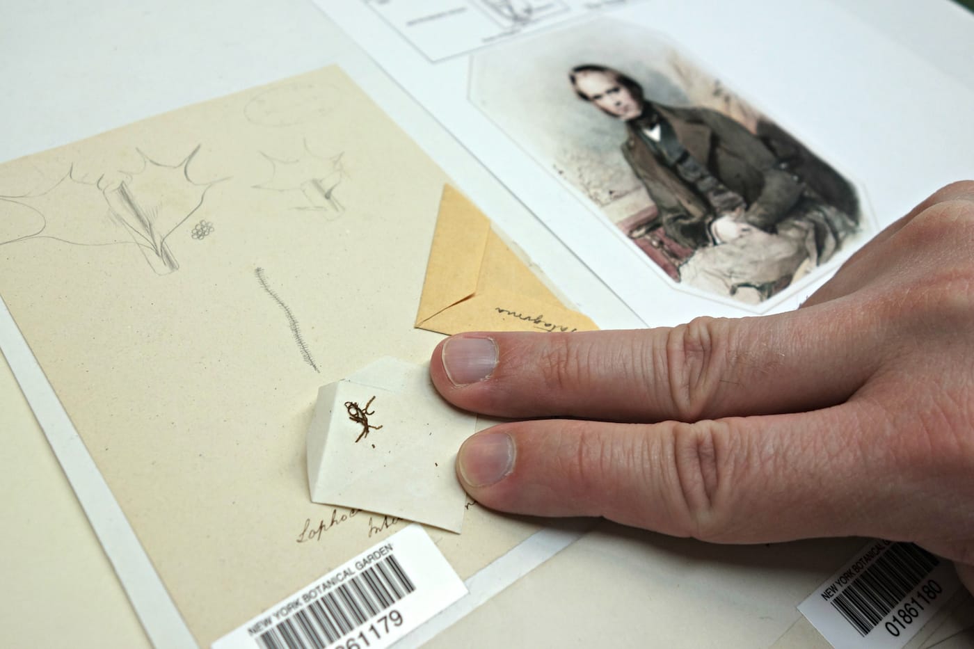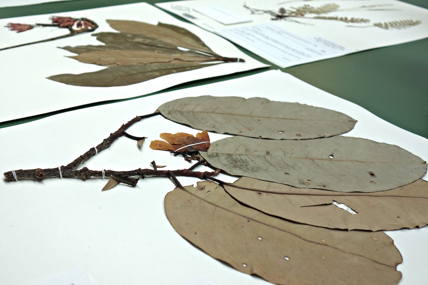 A specimen that has been used for molecular study (note the segment in its leaf) (photo by the author for Hyperallergic)