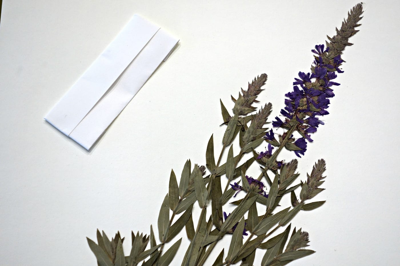 Specimen of Purple Loosestrife, an invasive European weed that has crowded out native American species since the 1830s, on view in What in the World is a Herbarium? (photo by the author for Hyperallergic)