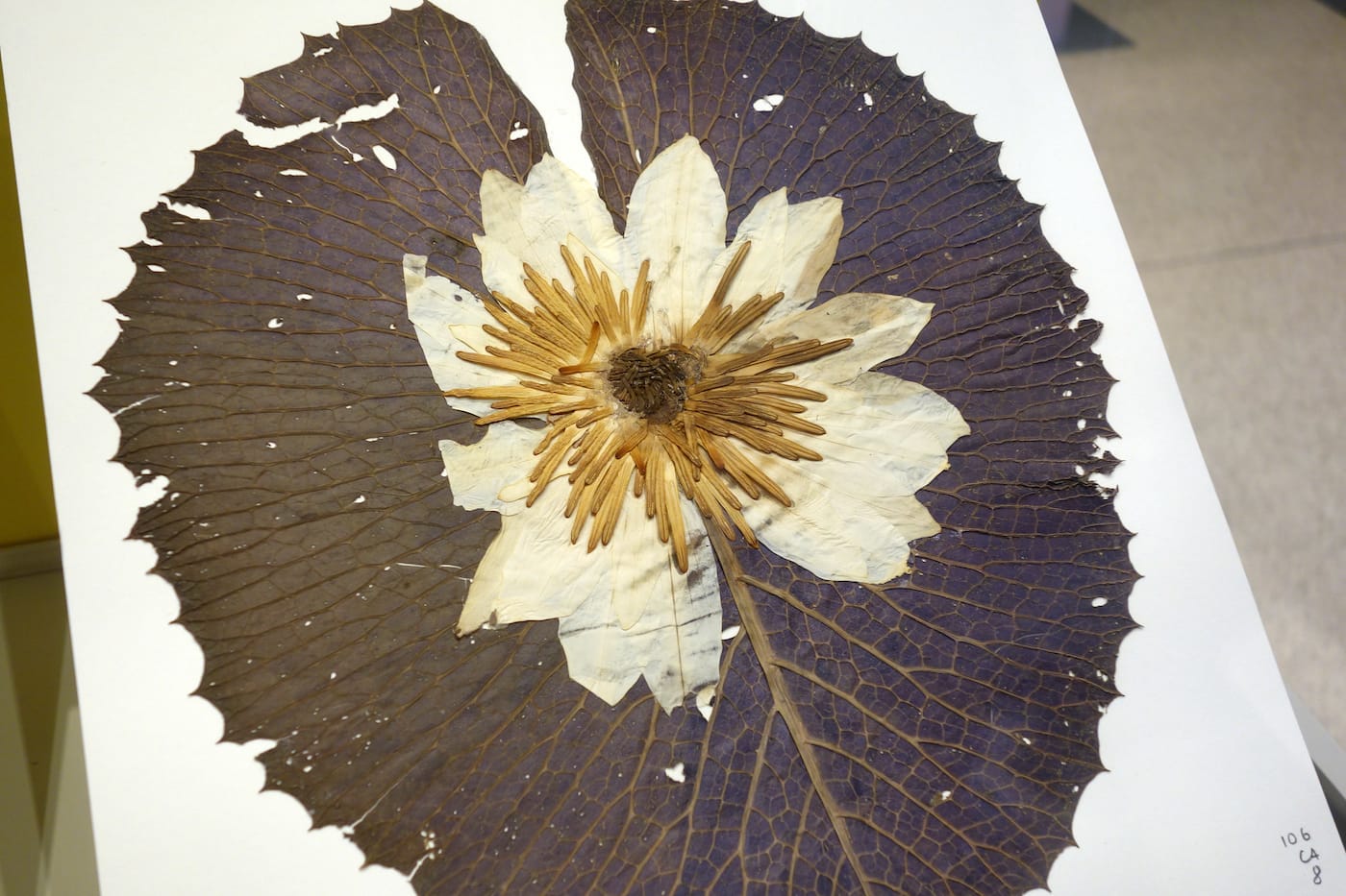 Egyptian white water-lily specimen on view in What in the World is a Herbarium? (photo by the author for Hyperallergic)