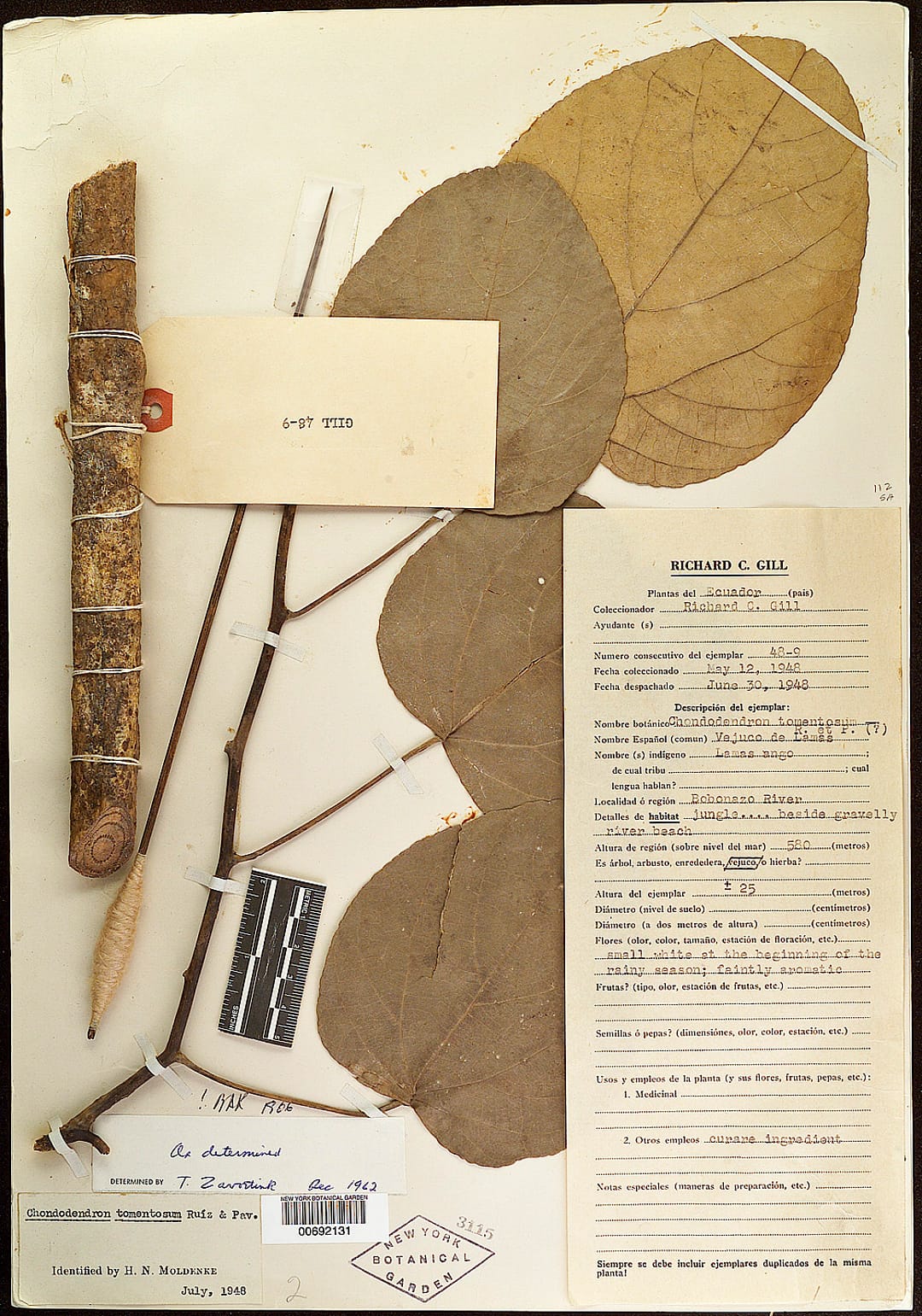 Chondrodendron tomentosum (Curare) specimen, with a poison dart — an extract from the tropical Amazonian vine is the poison used on blow darts. (courtesy New York Botanical Garden)