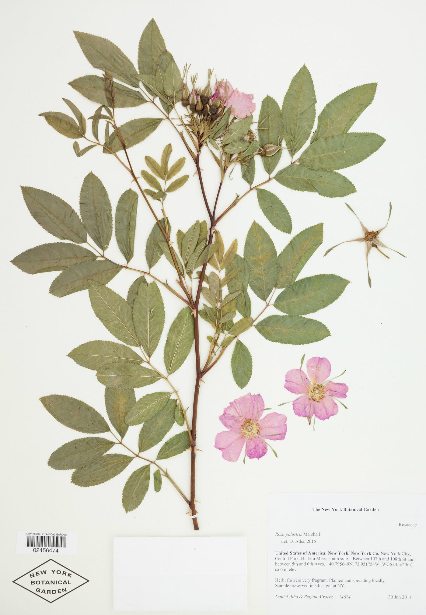 Rosa palustris (Swamp Rose) specimen collected by NYBG scientist Daniel Atha in New York City’s Central Park, where he is working to document all of the park’s naturally occurring plants (courtesy New York Botanical Garden)
