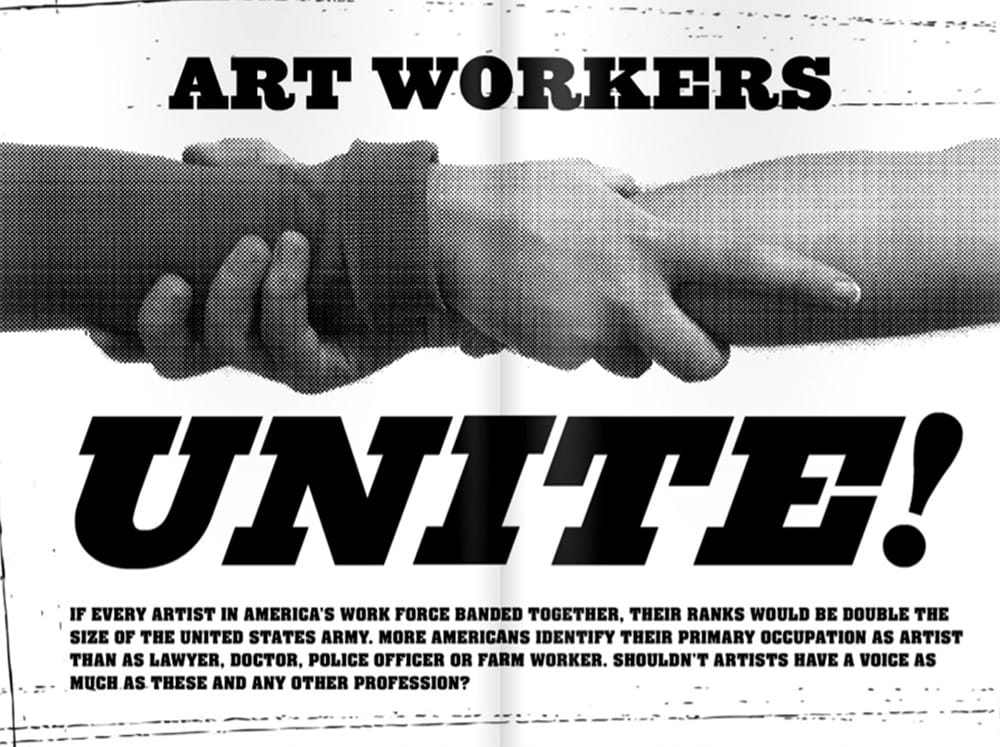 Helen Molesworth reminds us in Work Ethic that we may think of strikes as calls to halt production in order to protest wages and working conditions, but they are, in a deeper sense, a powerful way of saying NO. In an artists’ metaphoric strike, she explains, art making doesn’t stop, but it is withheld from the art market’s system of commodification and display. Instead, artists redirect their focus — for a moment at least — to relate what they do to other economic and ideological systems. What does that mean? American artists have, in the past, mobilized most frequently around issues pertaining to the institutions in which they work (i.e. museums and galleries), but they have also organized protests against the Vietnam War and public health policies that failed during the AIDS Crisis. Artists were central to Occupy Wall Street and helped to put the plights of distant victims of neoliberal policies and practices onto the front page of the New York Times. So what could happen now — even for just a day?