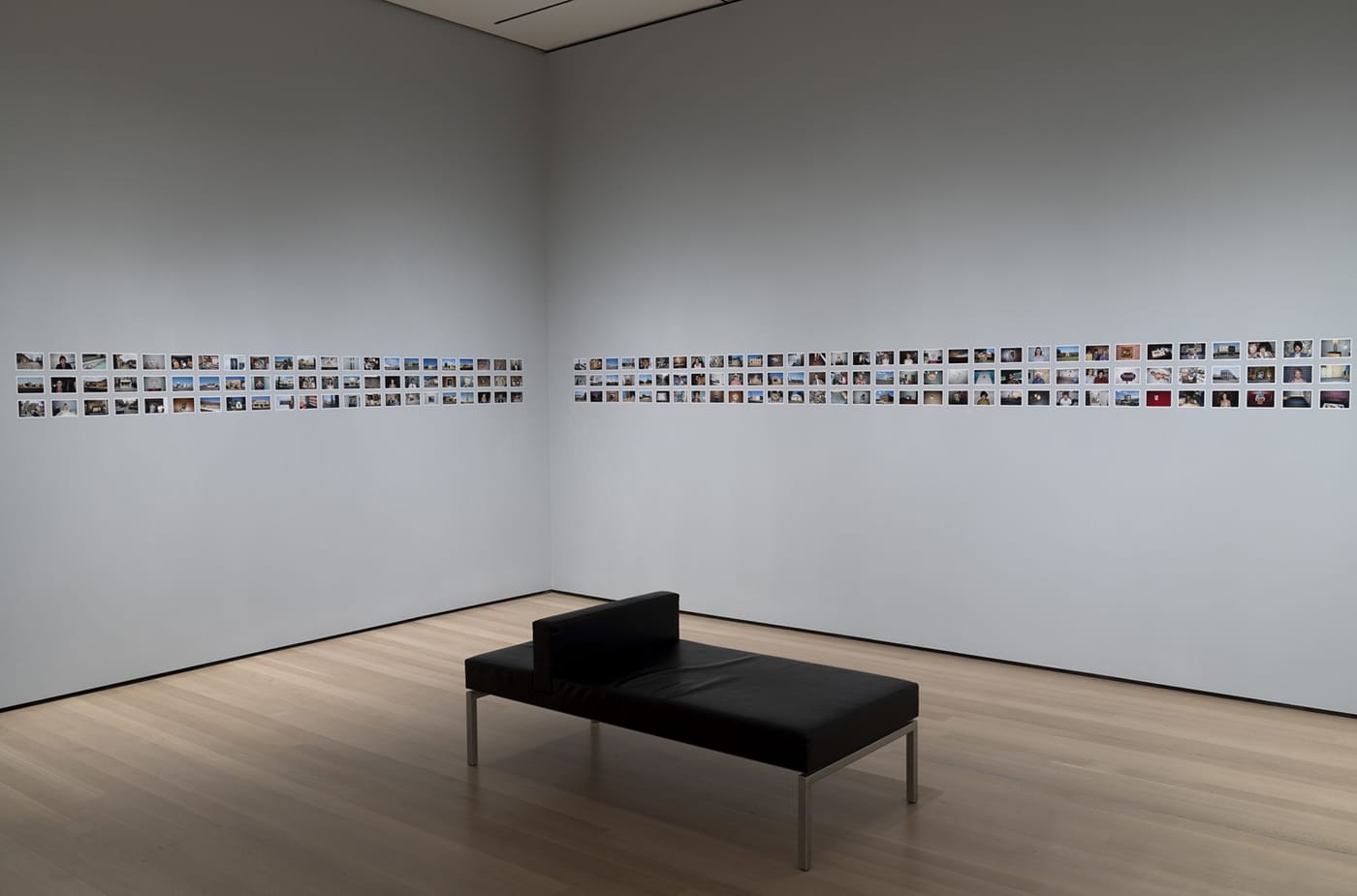 At Stephen Shore, the monumental retrospective at the Museum of Modern Art, American Surfaces is presented as it was first shown at Light Gallery in 1972: over 200 postcard-sized images, unframed and pinned to the wall in an indeterminate grid. There are plenty of shots of motels and highways, random pictures of unremarkable people, off-kilter views of shop windows and commercial advertising. As opposed to Robert Frank, an earlier photographer who traipsed the United States, this is not an indictment of a crass country. The political events of the time are almost entirely invisible. Instead, we get a photographic oxymoron: a diaristic account that is thoroughly impersonal. We get to see what Shore has encountered, a trip turned into two-dimensional depictions with no emotional GPS to tell us where to go or what to feel.