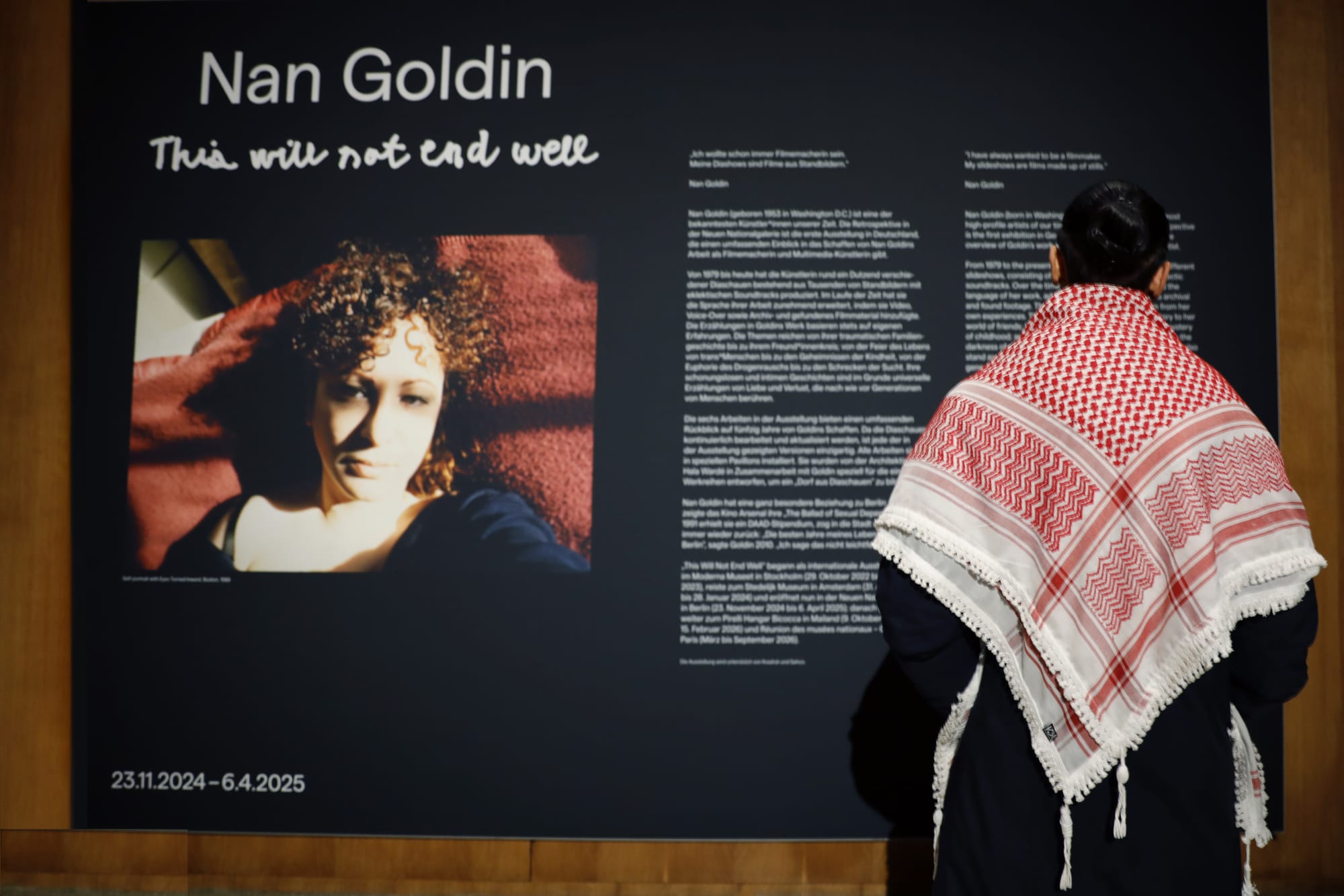 Jewish-American artist and activist Nan Goldin criticized the German state and its unconditional allegiance to Israel in a searing speech during the opening reception for her retrospective at the Neue Nationalgalerie in Berlin last Friday evening, November 22. The 14-minute address drew immense support from a crowd of pro-Palestine activists and artists onsite, whose chants drowned out the words of Museum Director Klaus Biesenbach who spoke shortly after. Goldin's speech also sparked intense disapproval from German politicians and administrators as the nation continues its crackdown on any criticism of Israel or Zionism.