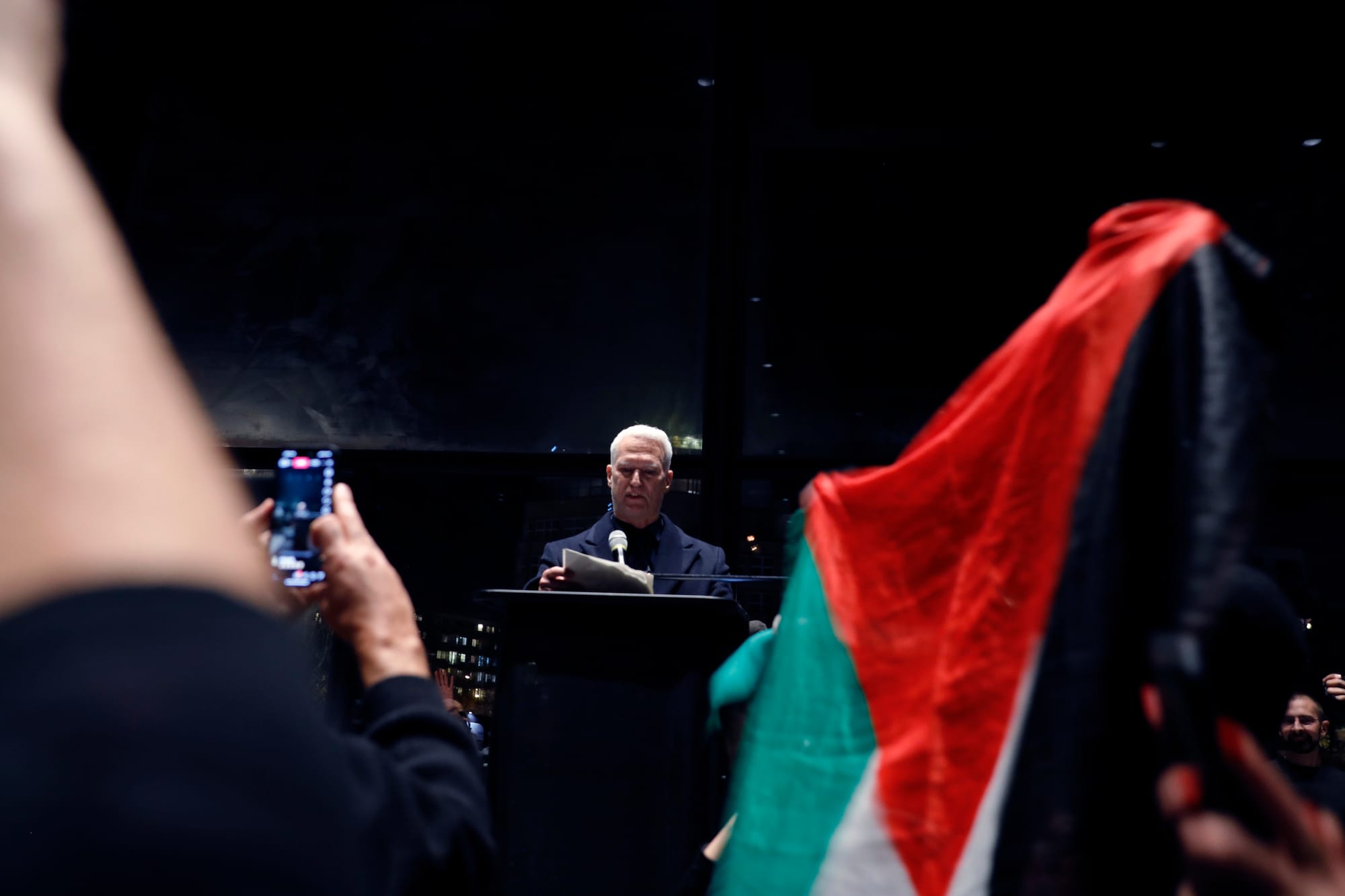 Goldin ended her speech with a call for pro-Palestine activists to unify under the cause and amplify the voices of Palestinians, inviting cheers. When Biesenbach approached the podium, his words were practically drowned out as the crowd continued to chant.
