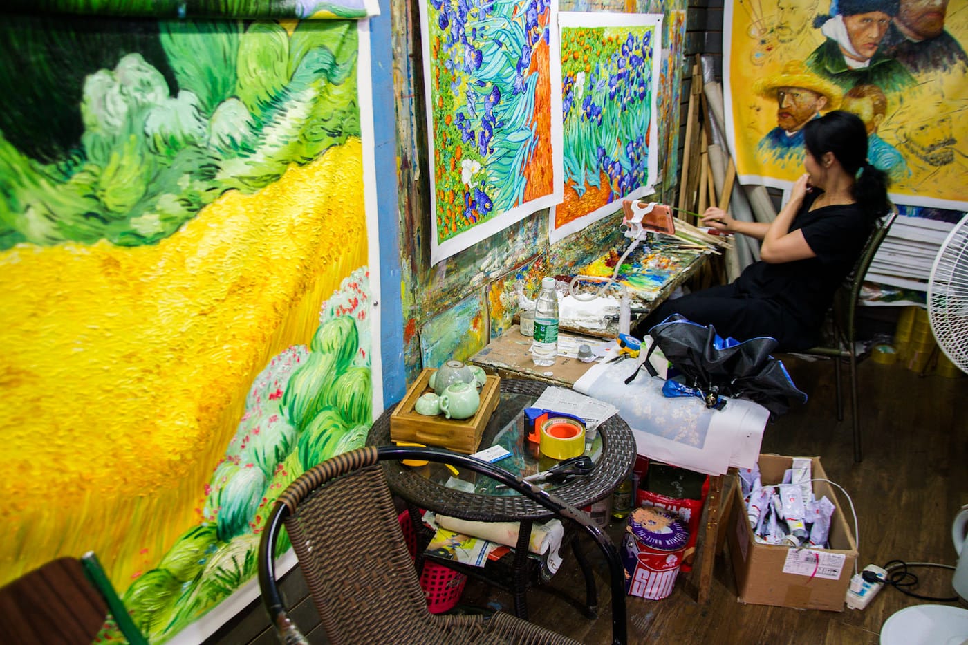There was a time not long ago when the Chinese village of Dafen became infamous for cornering the market on oil painting reproductions. Formerly home to some 300 rice growers, Reuters reports the Shenzhen suburb of southern China hosts approximately 8,000 painters and 1,200 galleries devoted to creating imperceptible reproductions of European masters like Van Gogh and Leonardo Da Vinci. Lined with tens of thousands of these canvases drying on clotheslines, the town became the focus of the 2016 documentary China’s Van Goghs, which profiled Zhao Xiaoyong, one of the many artists in the painting district responsible for creating reproductions sold at tourist shops, galleries, and museums.