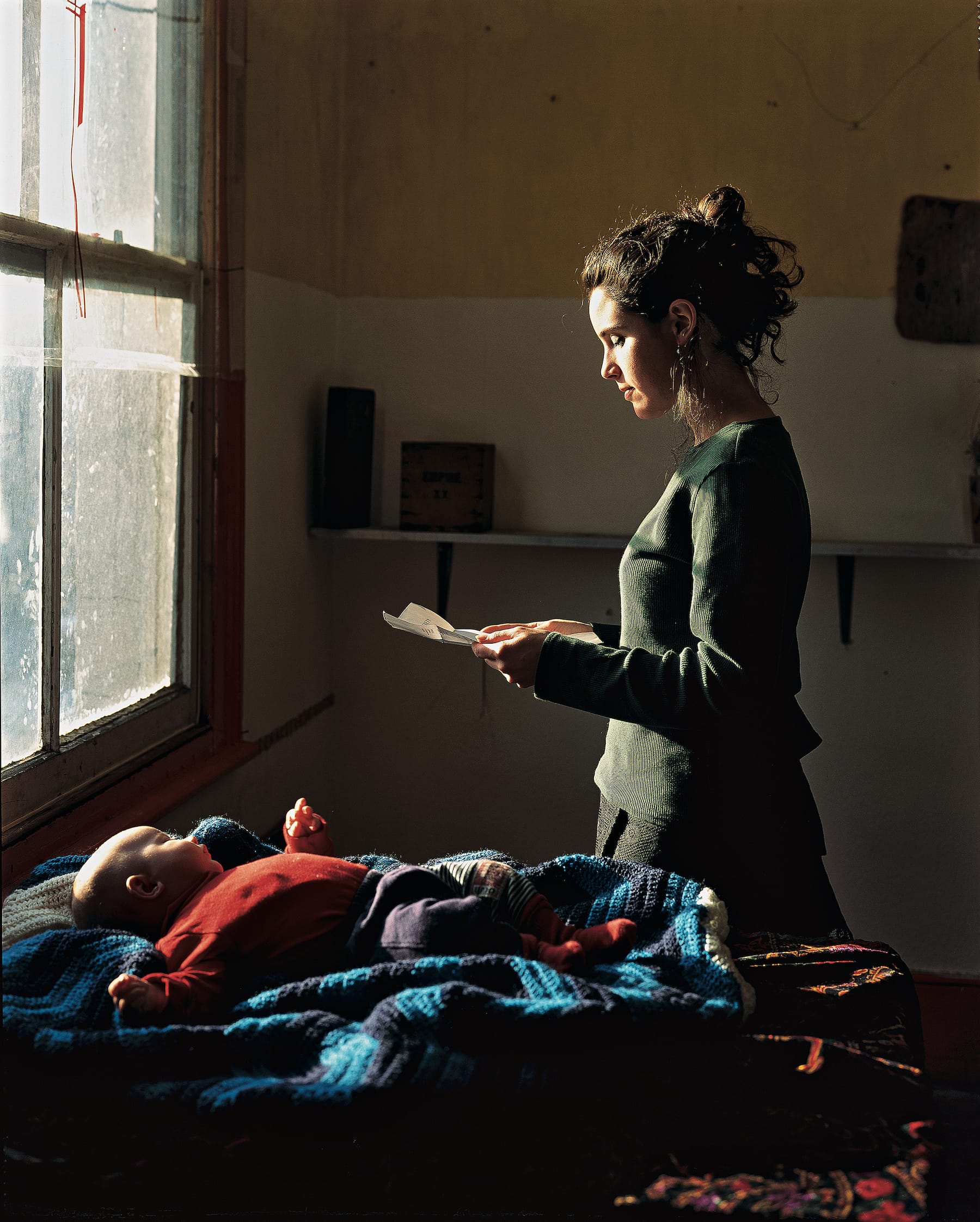 Another reference to art history comes in Tom Hunter’s “Woman Reading a Possession Order”(1997) in which the artist re-stages Vermeer’s “Girl Reading a Letter at an Open Window” (1657–59). Vermeer’s luxurious Dutch interior becomes a squat in East London, the bowl of fruit becomes a baby, and the love letter becomes an eviction notice. While the magic and beauty of the composition remain, one woman’s hopeful moment is transformed into a hopeless scenario for another. The work brings up fascinating questions about home and womanhood. For example, who owns the window? In Vermeer’s painting, it’s a marker of domestic confinement, perhaps even imprisonment, while in Hunter’s version it’s the sign of a precarious but independent home. How do the scenes relate to women’s sexuality? The excitement of a budding romance in Vermeer’s work becomes the responsibility of motherhood in Hunter’s.